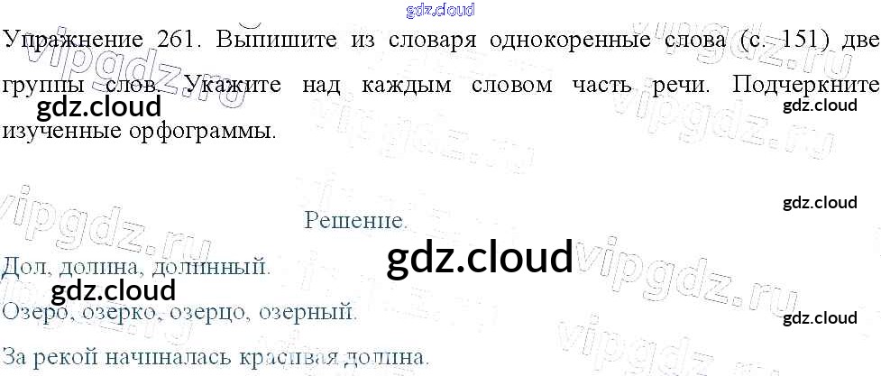 Ответ на задание 261 Учебник Русский язык за 3 (третий) класс Канакина, Горецкий Школа России 2013 Часть 1, 2