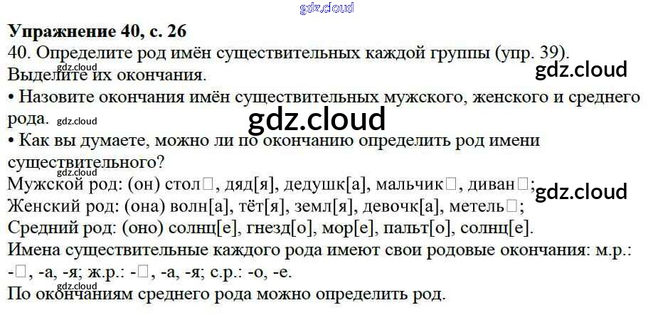 Ответ на задание 40 Учебник Русский язык за 3 (третий) класс Канакина, Горецкий Школа России 2013 Часть 1, 2
