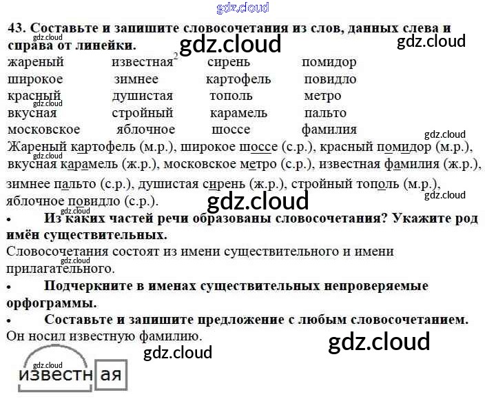 Ответ на задание 43 Учебник Русский язык за 3 (третий) класс Канакина, Горецкий Школа России 2013 Часть 1, 2