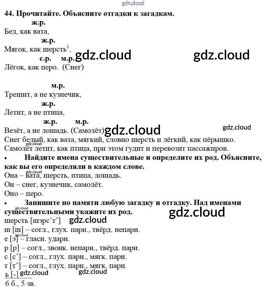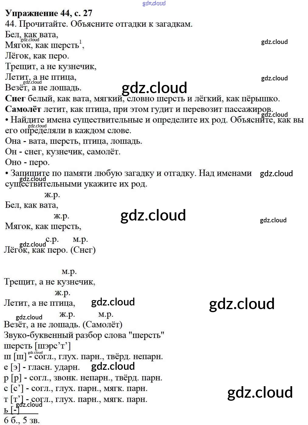 Ответ на задание 44 Учебник Русский язык за 3 (третий) класс Канакина, Горецкий Школа России 2013 Часть 1, 2