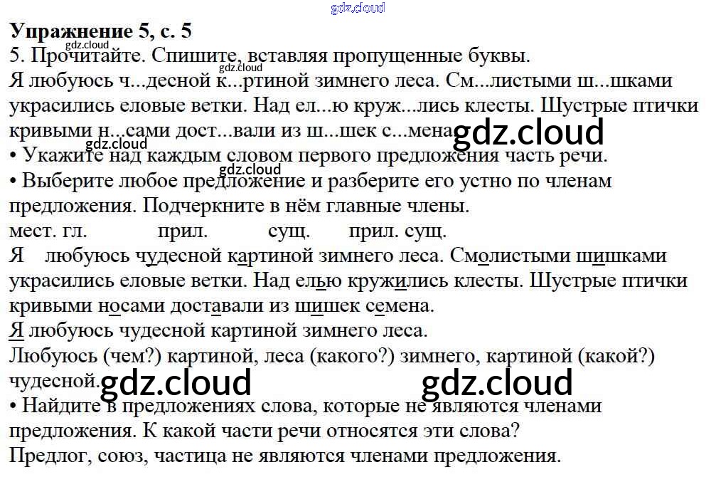 Ответ на задание 5 Учебник Русский язык за 3 (третий) класс Канакина, Горецкий Школа России 2013 Часть 1, 2