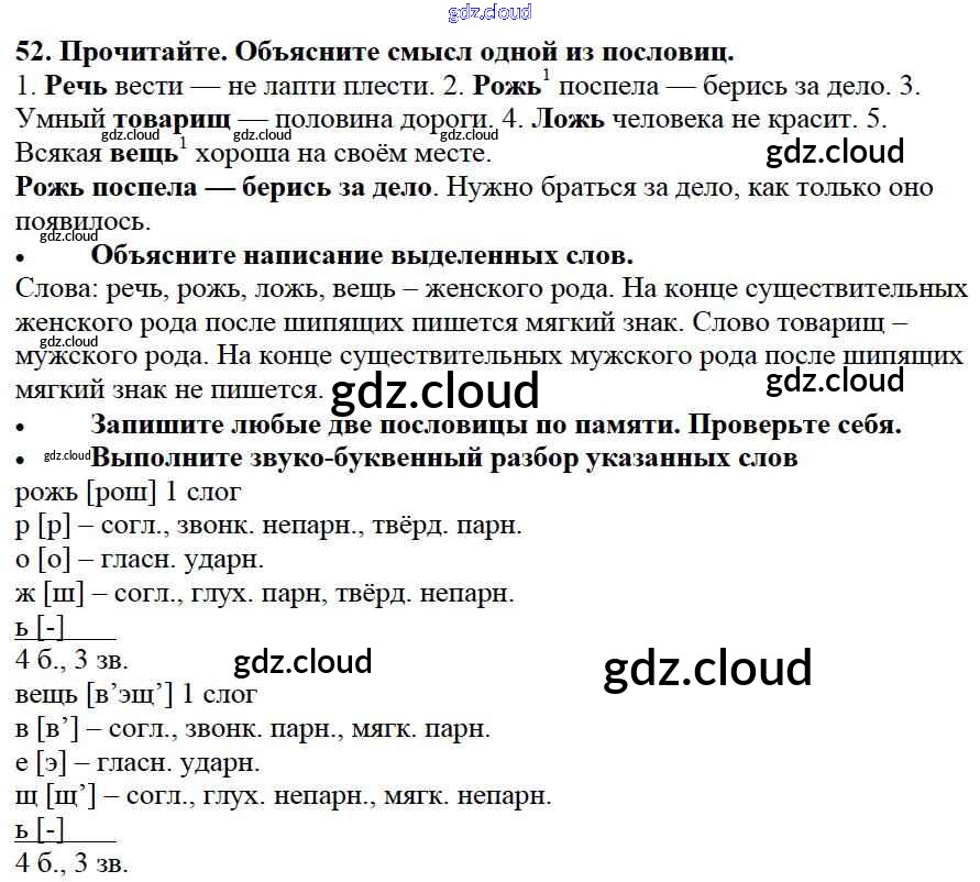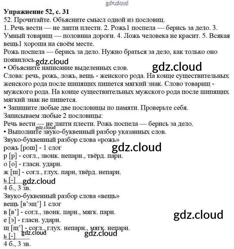 Ответ на задание 52 Учебник Русский язык за 3 (третий) класс Канакина, Горецкий Школа России 2013 Часть 1, 2