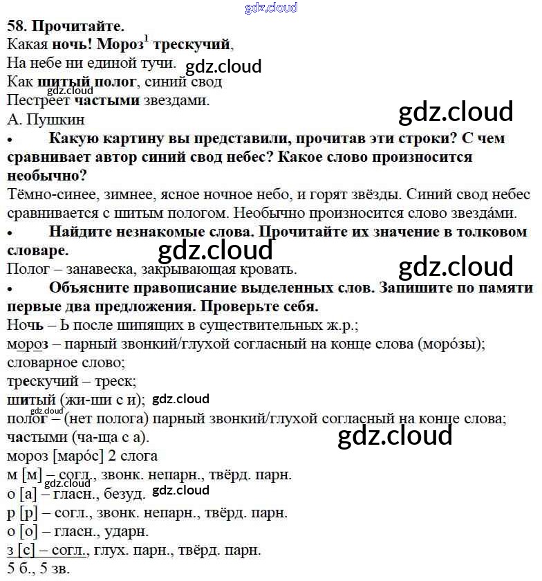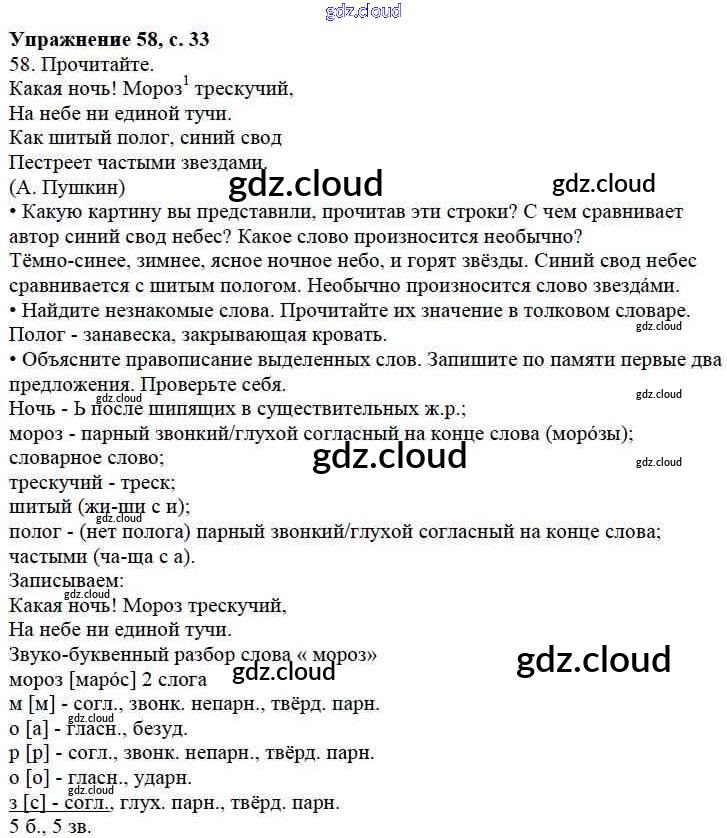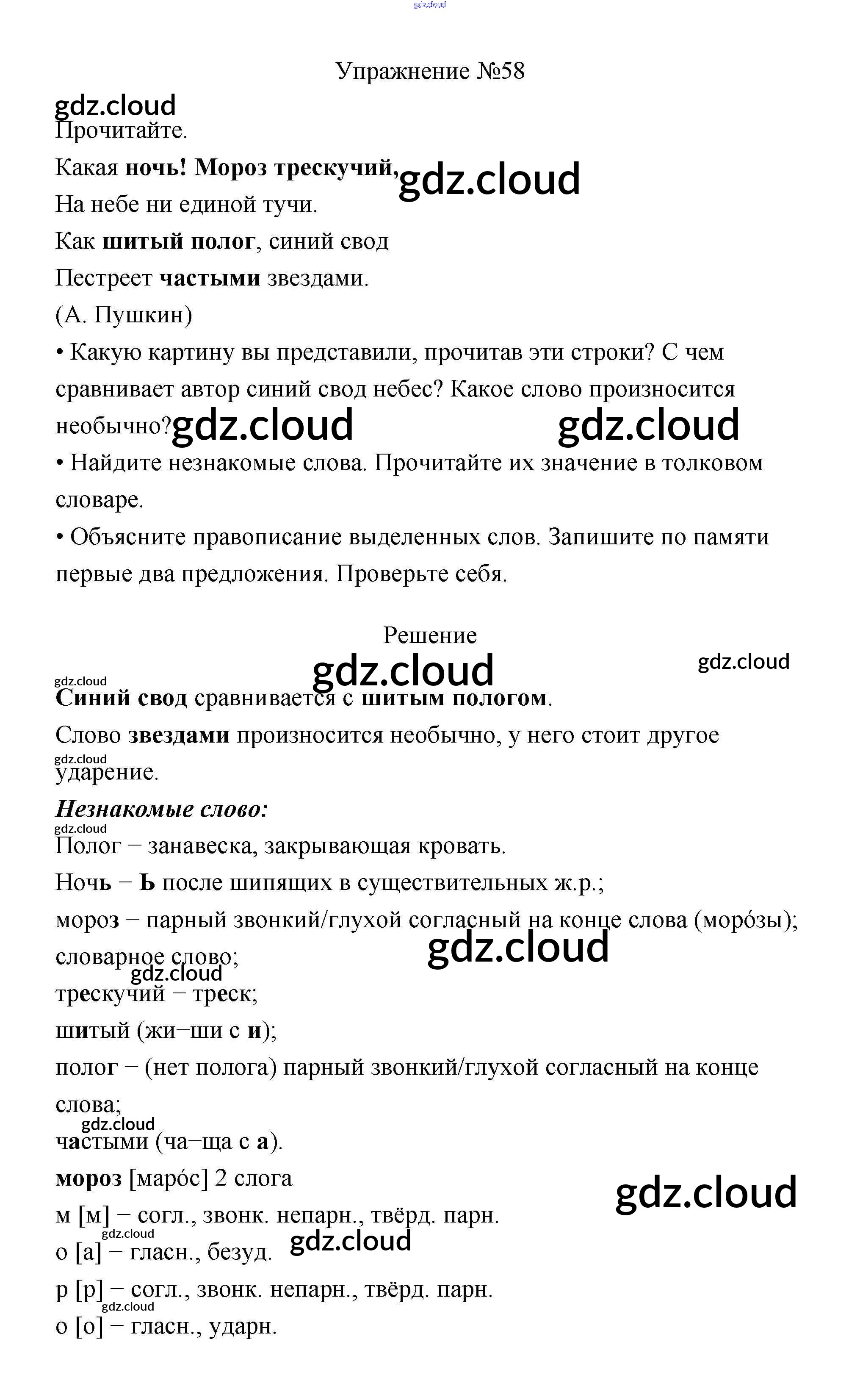 Ответ на задание 58 Учебник Русский язык за 3 (третий) класс Канакина, Горецкий Школа России 2013 Часть 1, 2