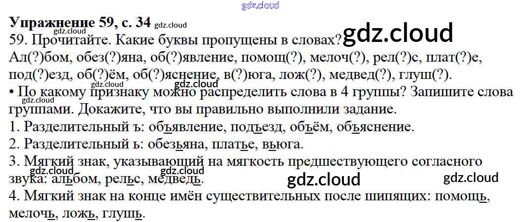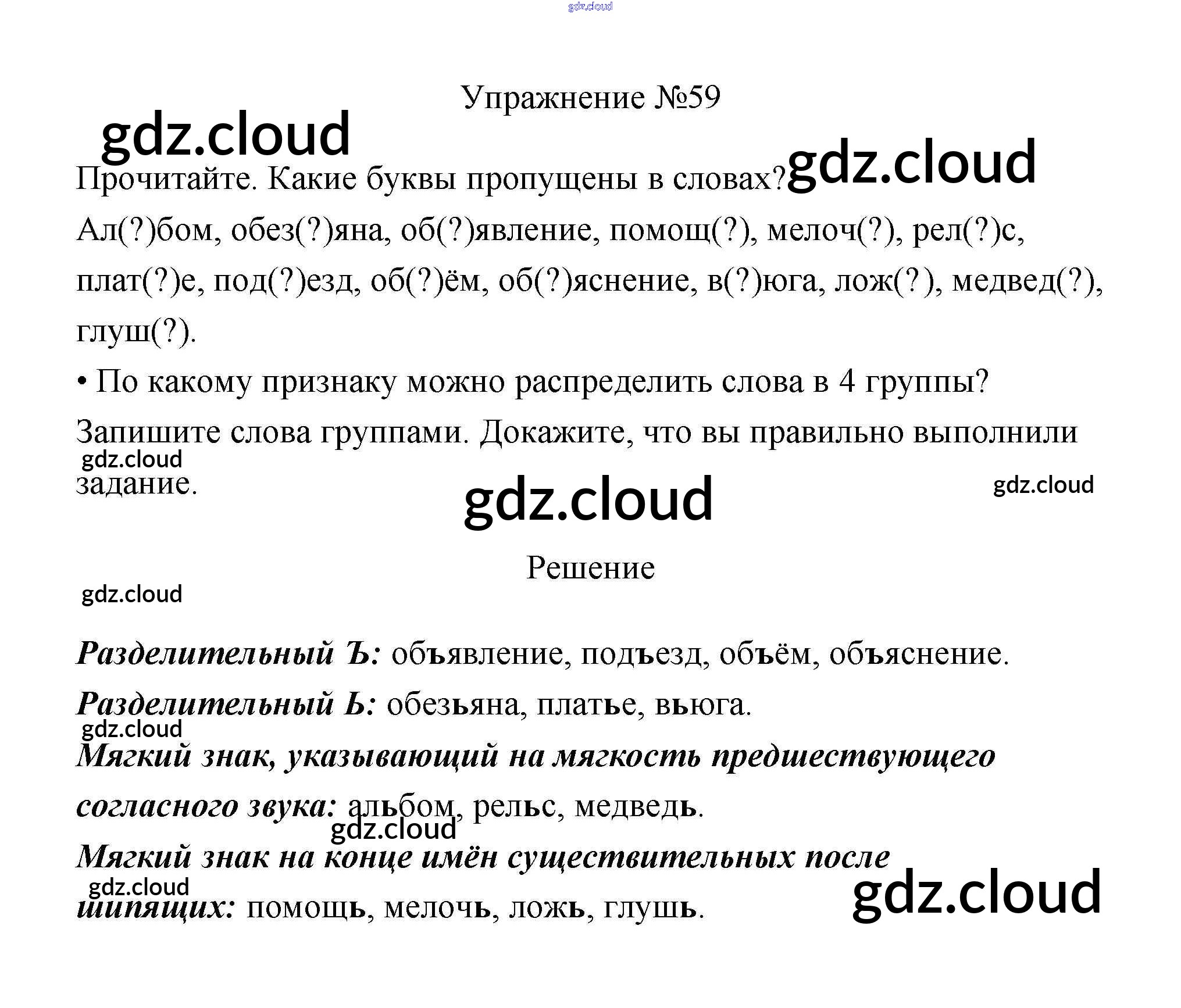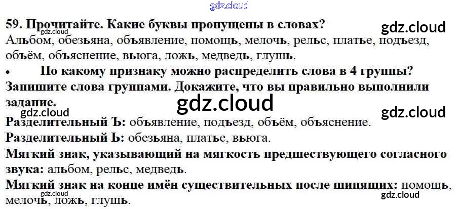 Ответ на задание 59 Учебник Русский язык за 3 (третий) класс Канакина, Горецкий Школа России 2013 Часть 1, 2