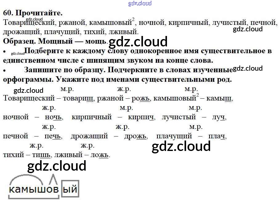 Ответ на задание 60 Учебник Русский язык за 3 (третий) класс Канакина, Горецкий Школа России 2013 Часть 1, 2