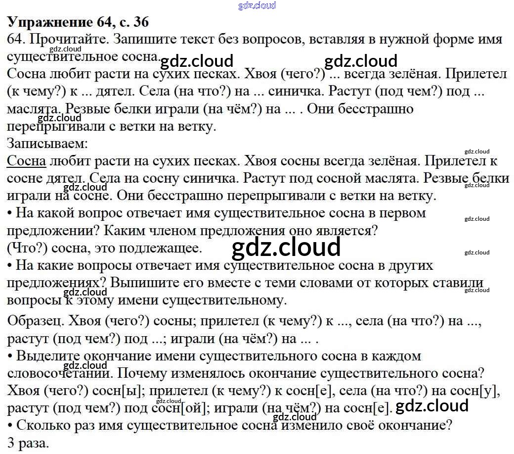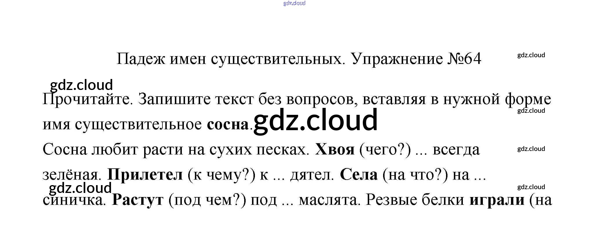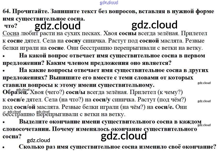 Ответ на задание 64 Учебник Русский язык за 3 (третий) класс Канакина, Горецкий Школа России 2013 Часть 1, 2