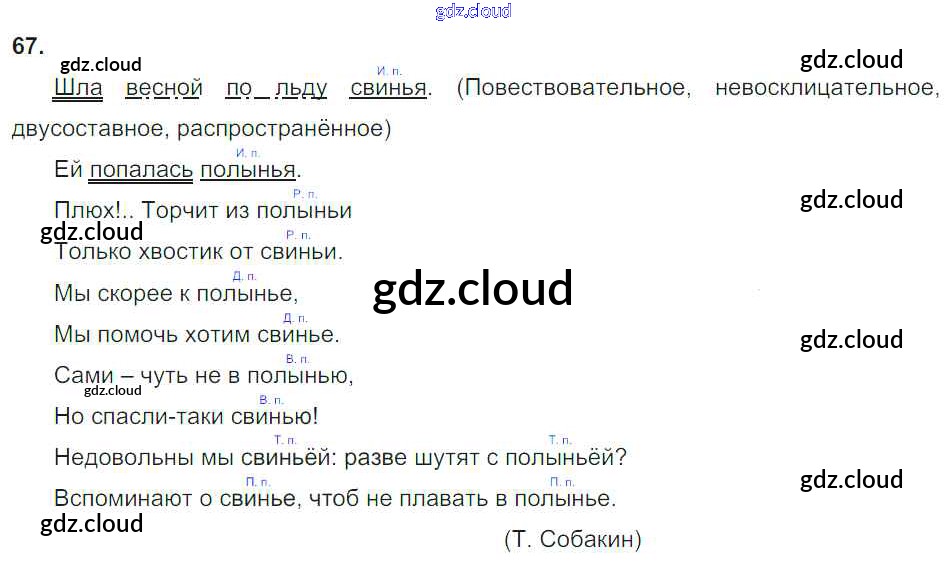 Ответ на задание 67 Учебник Русский язык за 3 (третий) класс Канакина, Горецкий Школа России 2013 Часть 1, 2