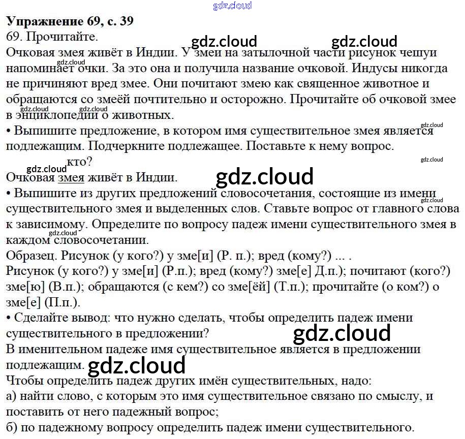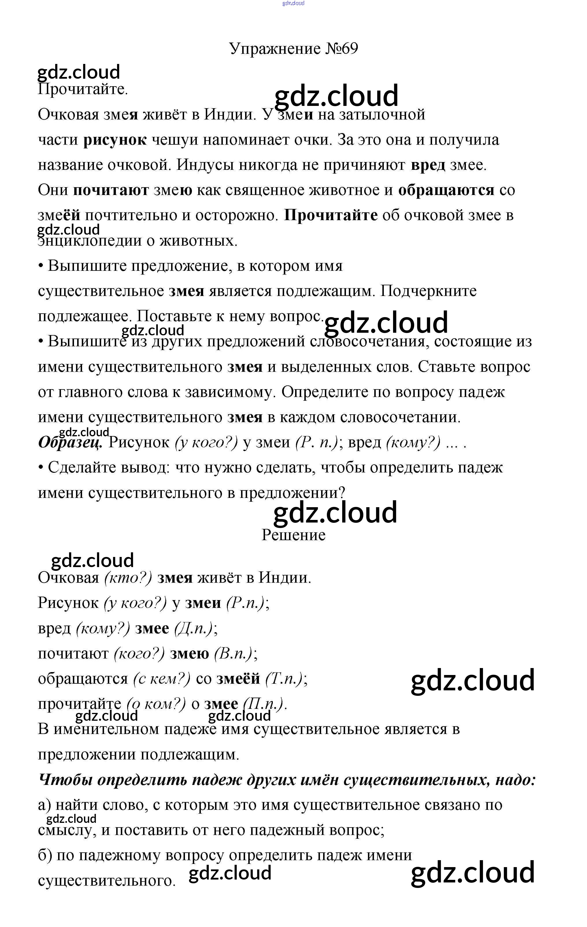 Ответ на задание 69 Учебник Русский язык за 3 (третий) класс Канакина, Горецкий Школа России 2013 Часть 1, 2