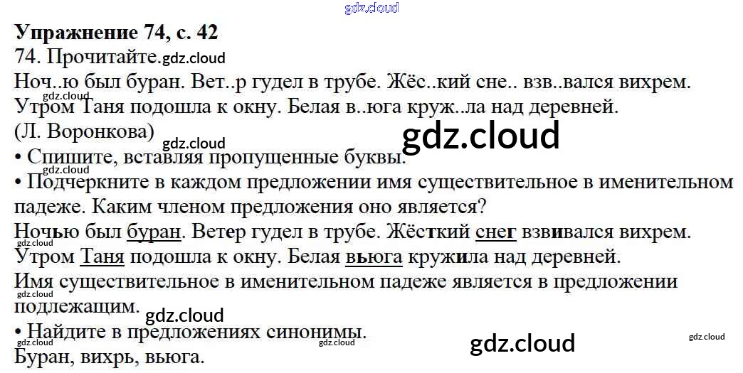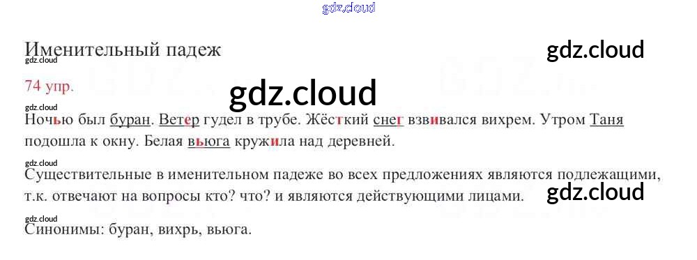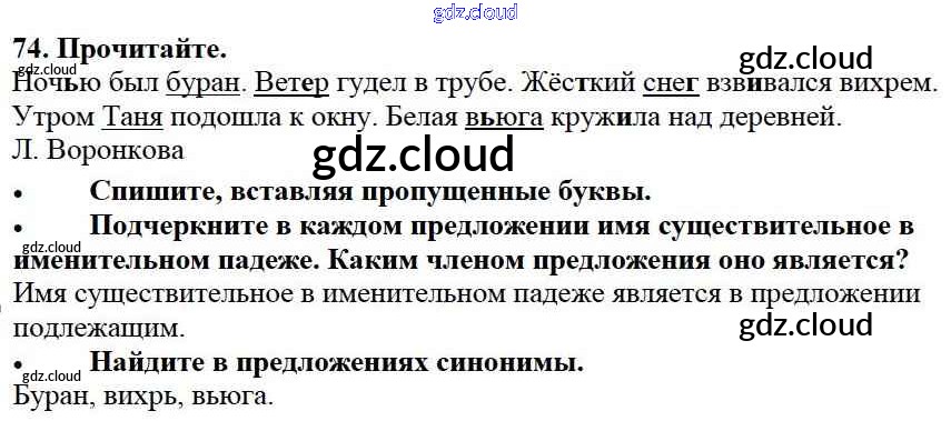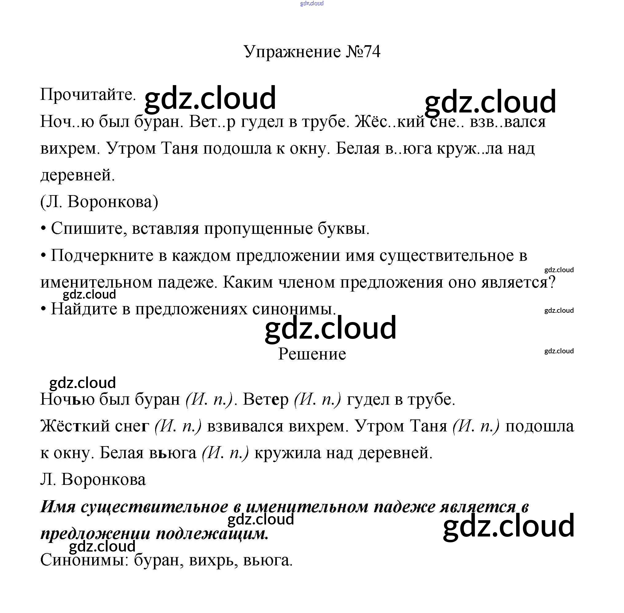Ответ на задание 74 Учебник Русский язык за 3 (третий) класс Канакина, Горецкий Школа России 2013 Часть 1, 2