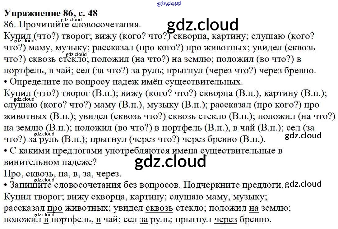 Ответ на задание 86 Учебник Русский язык за 3 (третий) класс Канакина, Горецкий Школа России 2013 Часть 1, 2