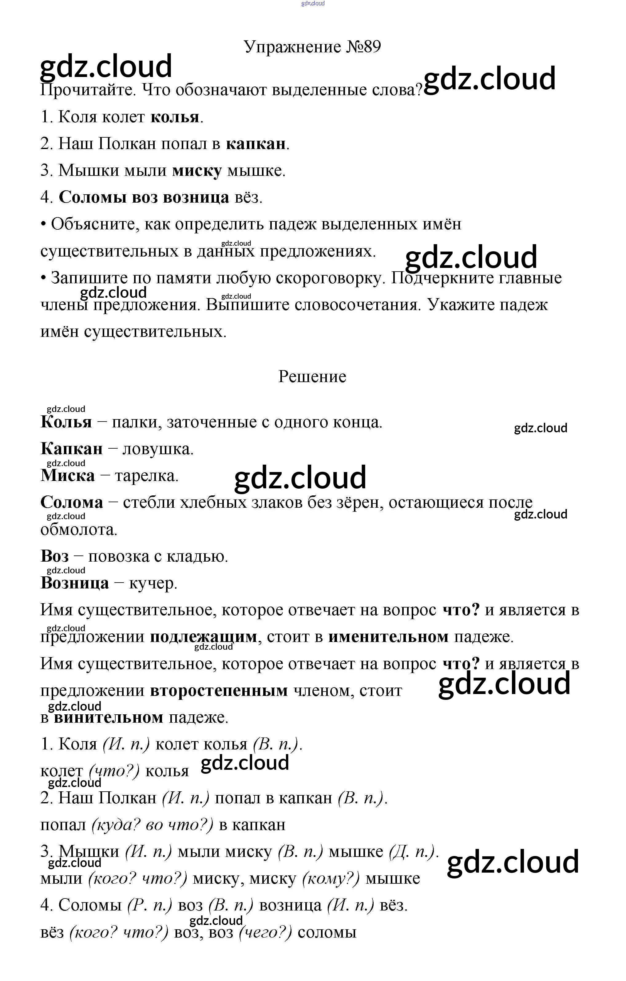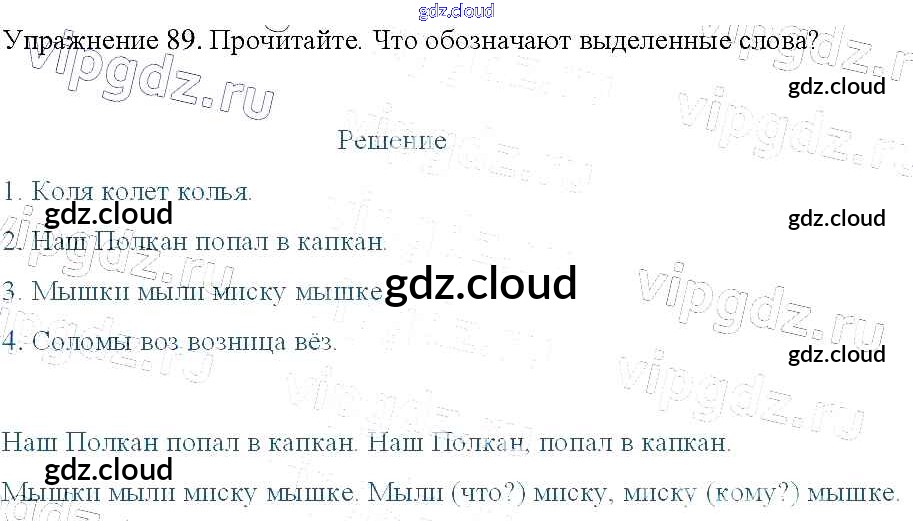 Ответ на задание 89 Учебник Русский язык за 3 (третий) класс Канакина, Горецкий Школа России 2013 Часть 1, 2