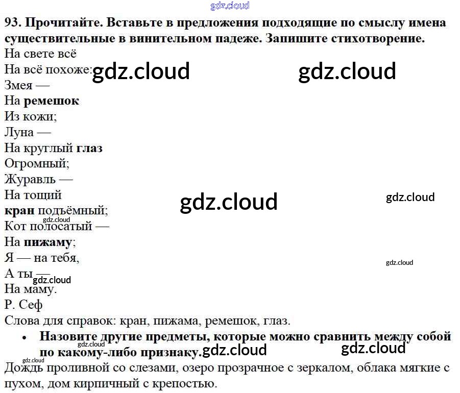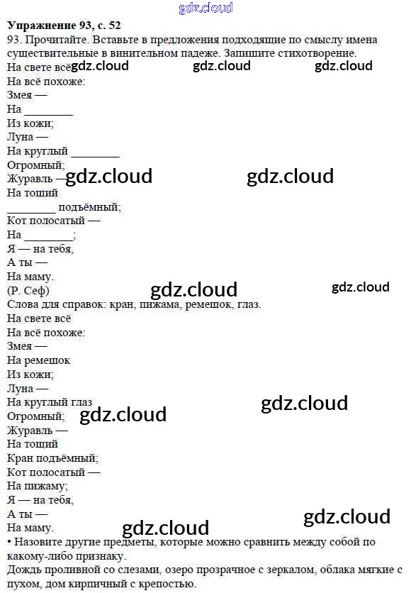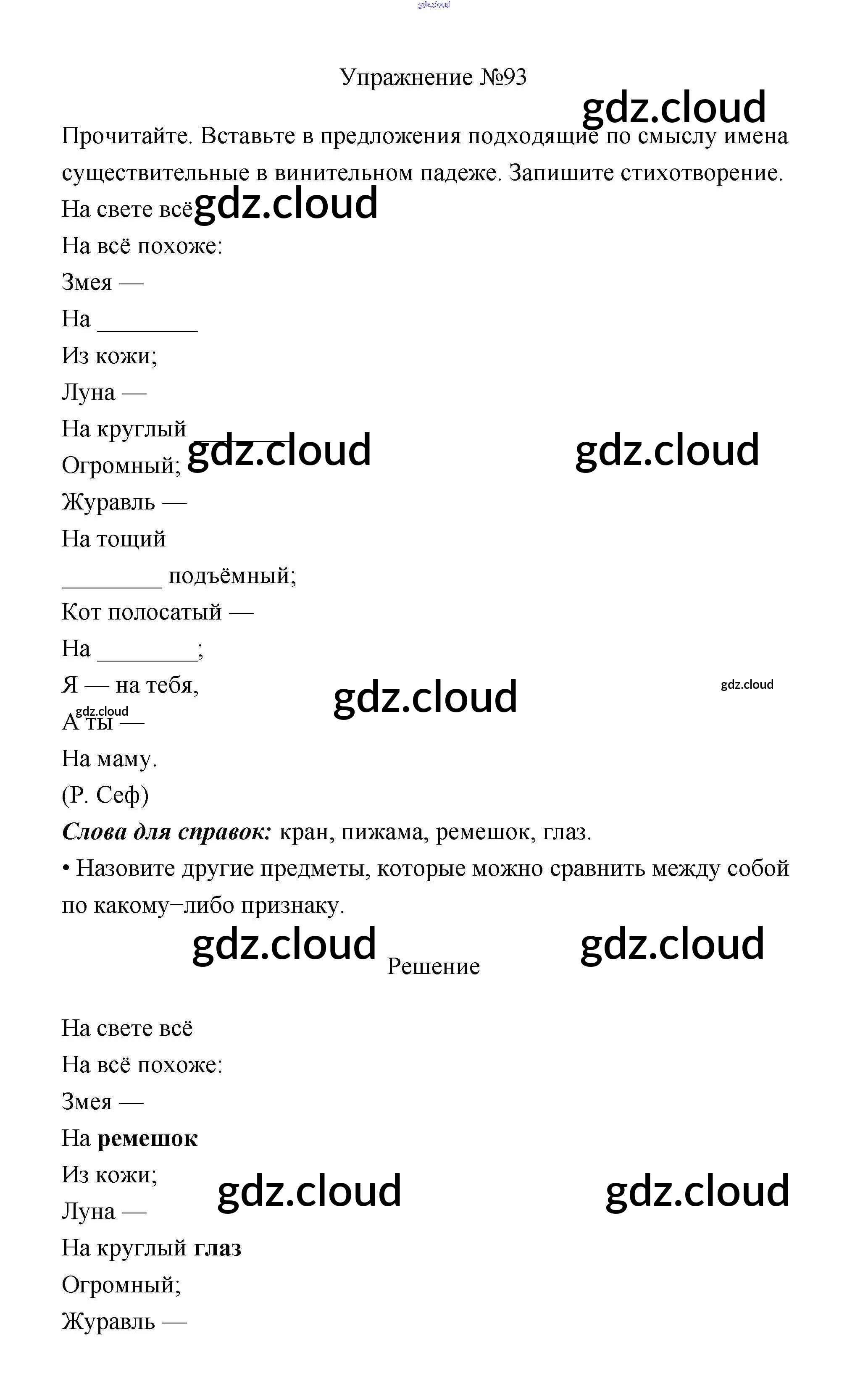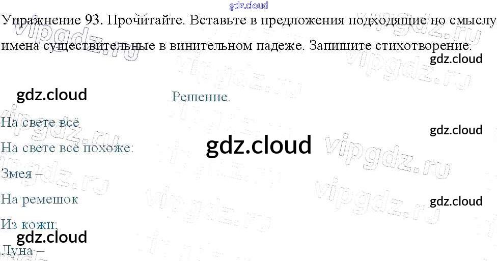 Ответ на задание 93 Учебник Русский язык за 3 (третий) класс Канакина, Горецкий Школа России 2013 Часть 1, 2
