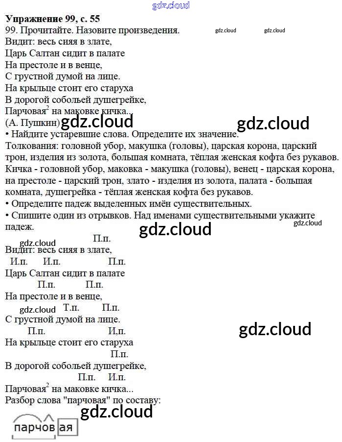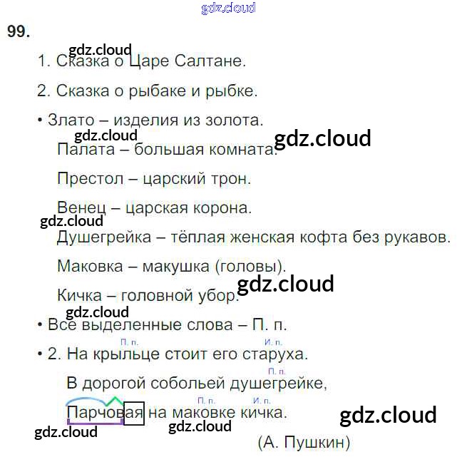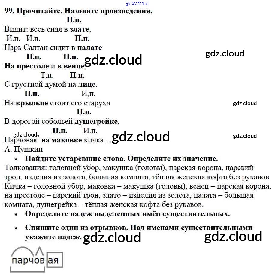 Ответ на задание 99 Учебник Русский язык за 3 (третий) класс Канакина, Горецкий Школа России 2013 Часть 1, 2