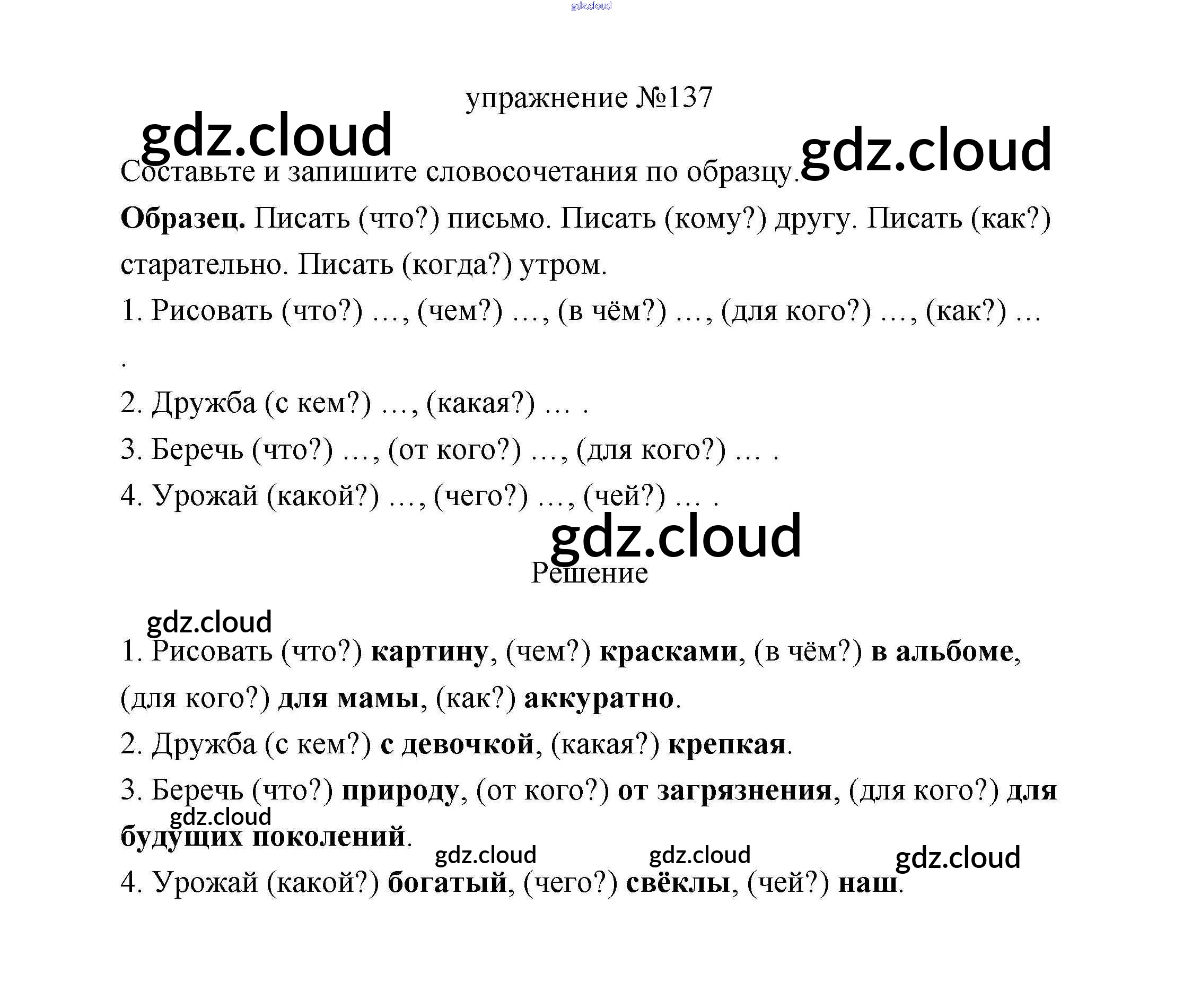 Ответ на задание 137 Учебник Русский язык за 3 (третий) класс Климанова, Бабушкина Перспектива 2019 Часть 1, 2