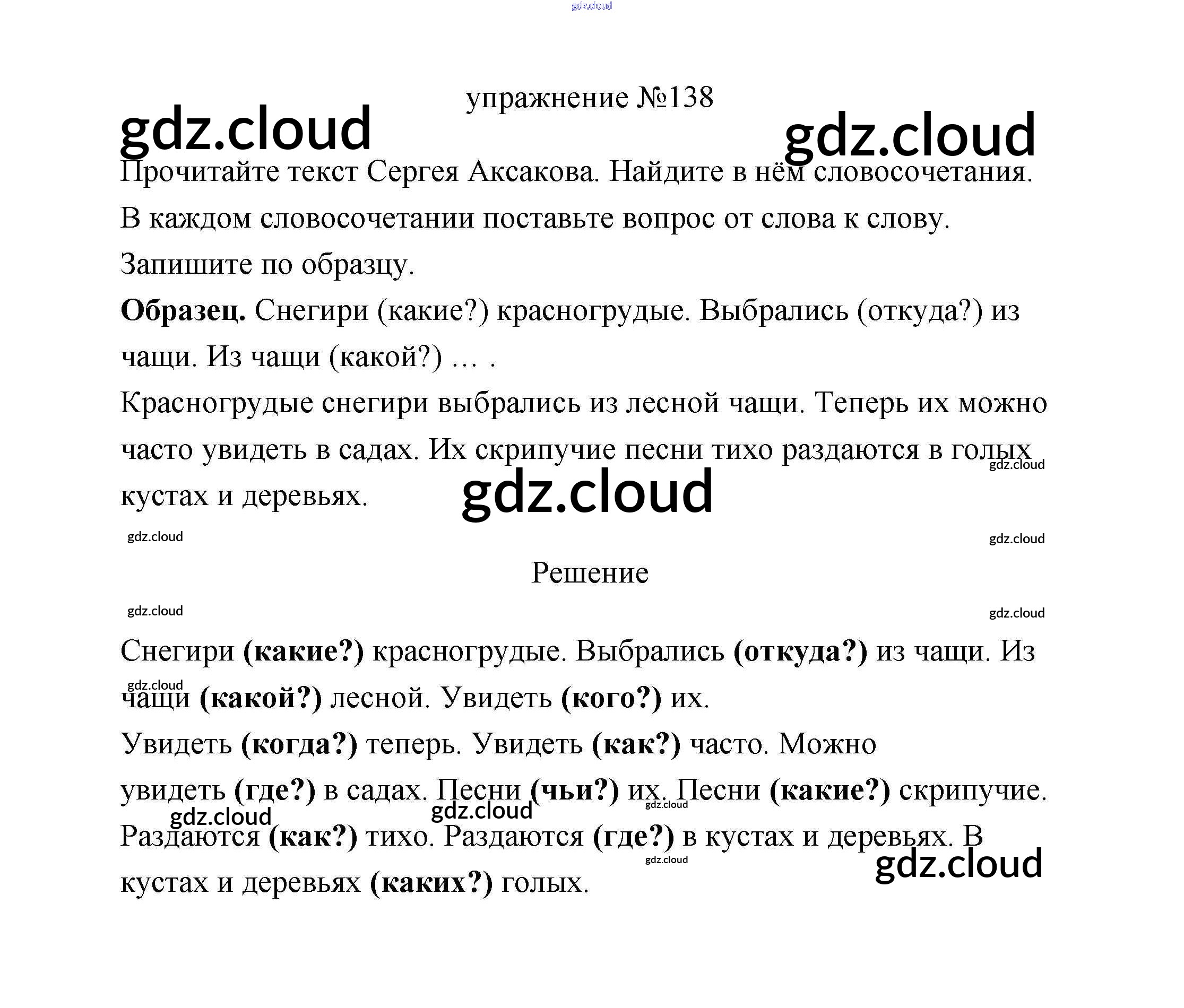 Ответ на задание 138 Учебник Русский язык за 3 (третий) класс Климанова, Бабушкина Перспектива 2019 Часть 1, 2