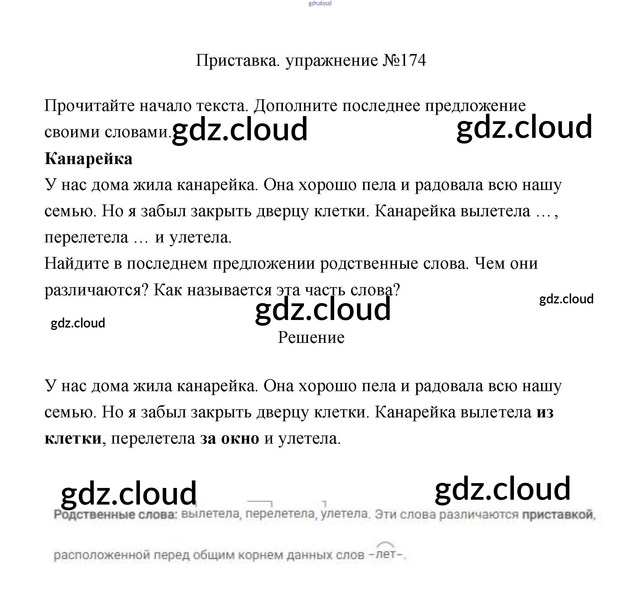 Ответ на задание 174 Учебник Русский язык за 3 (третий) класс Климанова, Бабушкина Перспектива 2019 Часть 1, 2