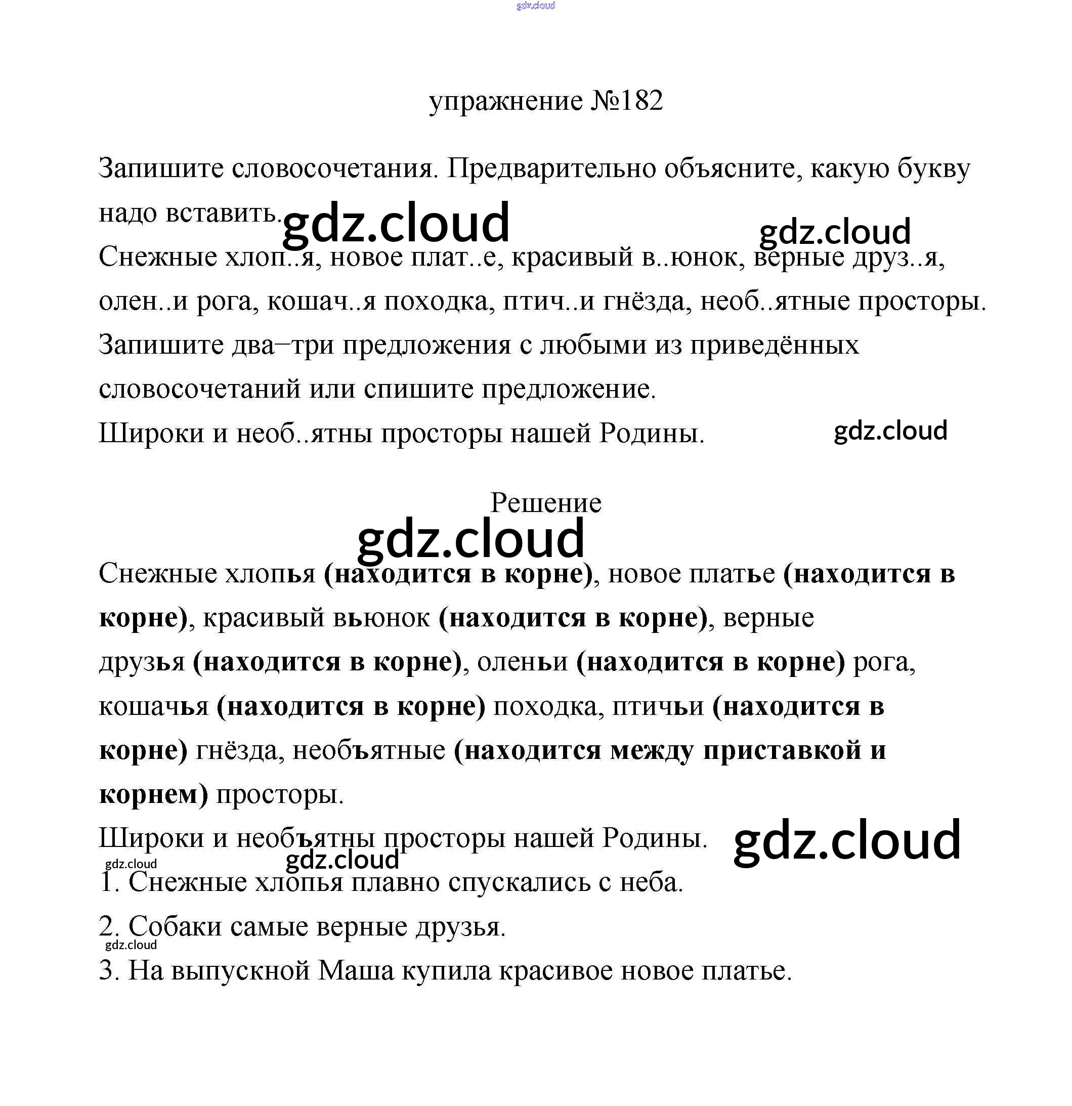 Ответ на задание 182 Учебник Русский язык за 3 (третий) класс Климанова, Бабушкина Перспектива 2019 Часть 1, 2