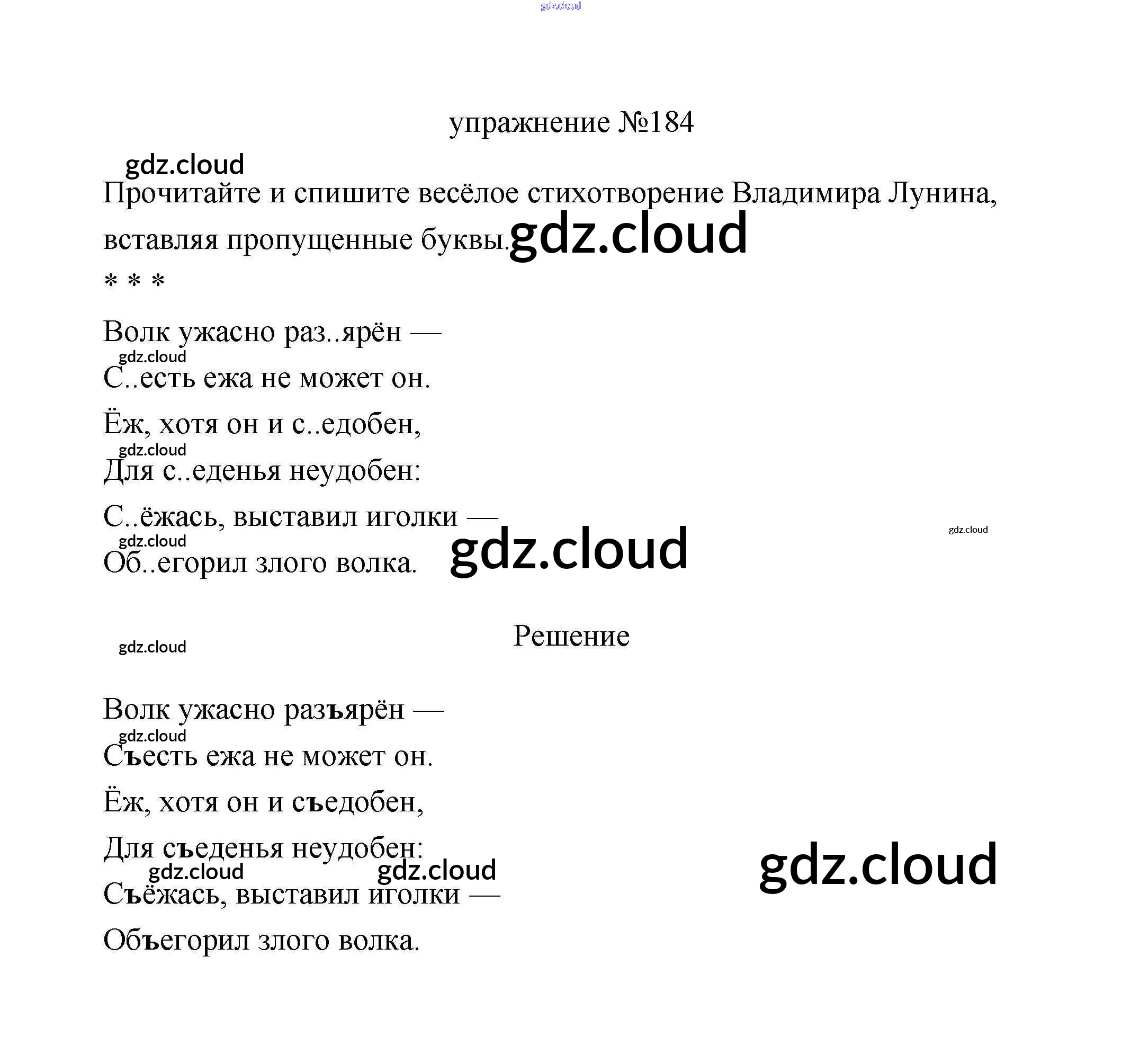 Ответ на задание 184 Учебник Русский язык за 3 (третий) класс Климанова, Бабушкина Перспектива 2019 Часть 1, 2