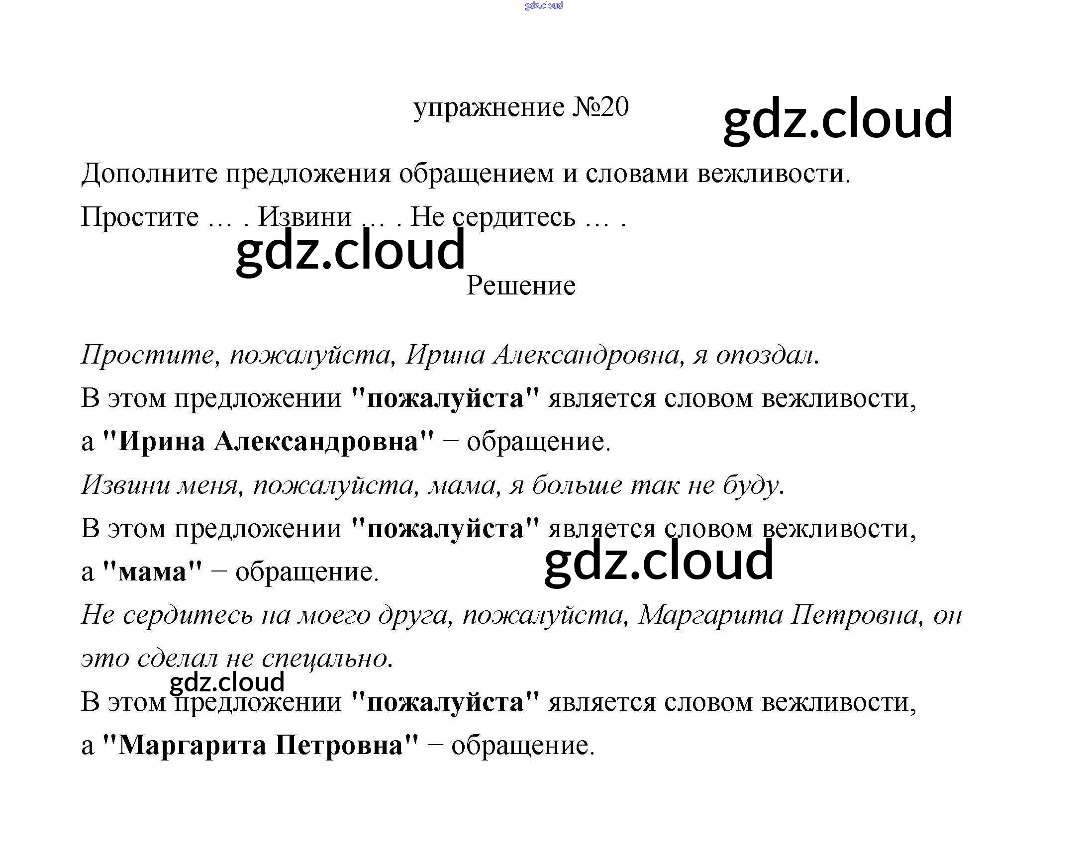Ответ на задание 20 Учебник Русский язык за 3 (третий) класс Климанова, Бабушкина Перспектива 2019 Часть 1, 2