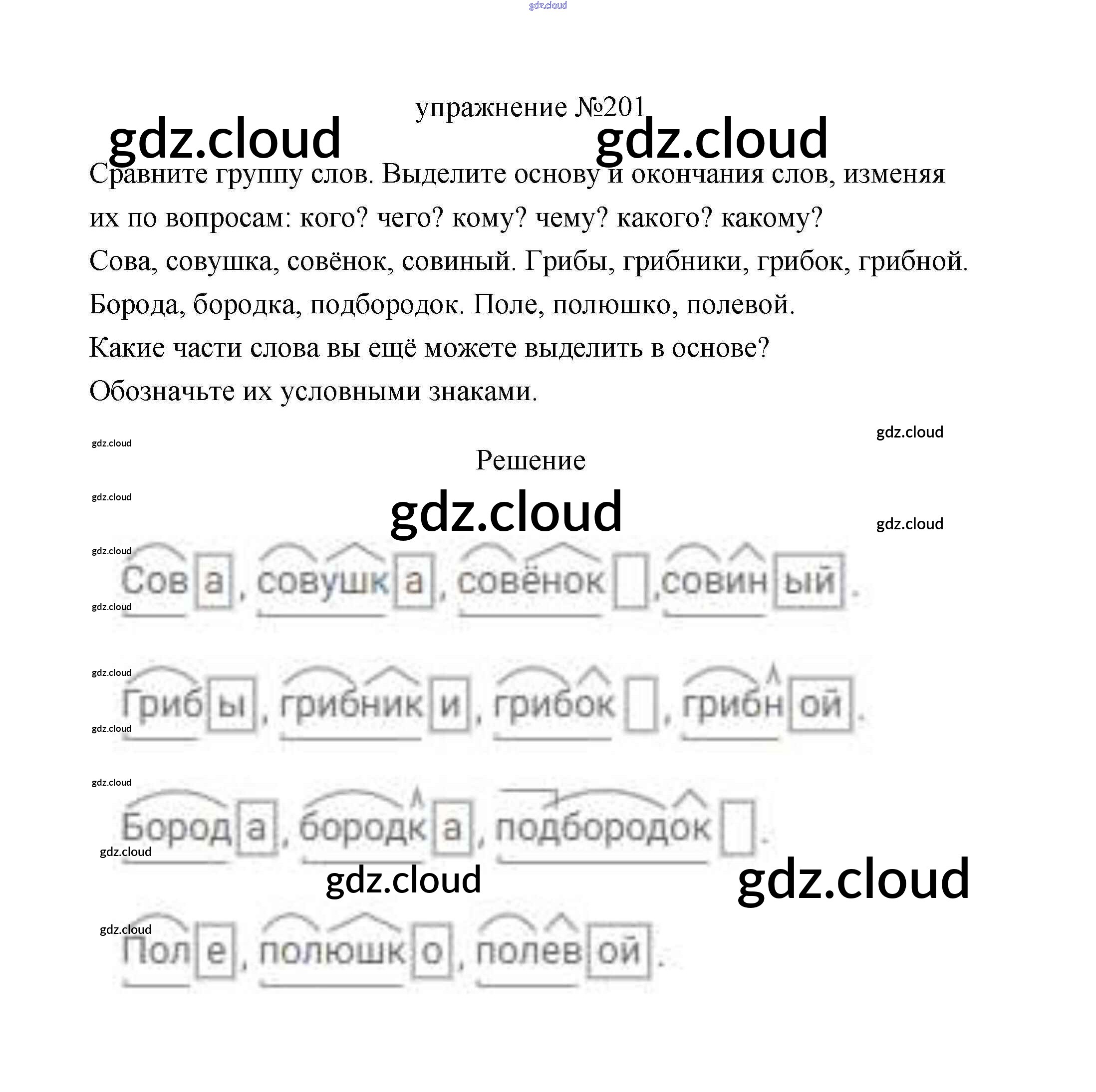 Ответ на задание 201 Учебник Русский язык за 3 (третий) класс Климанова, Бабушкина Перспектива 2019 Часть 1, 2