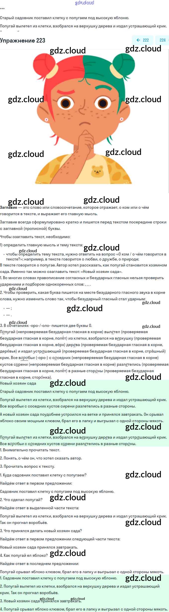 Ответ на задание 223 Учебник Русский язык за 3 (третий) класс Климанова, Бабушкина Перспектива 2019 Часть 1, 2
