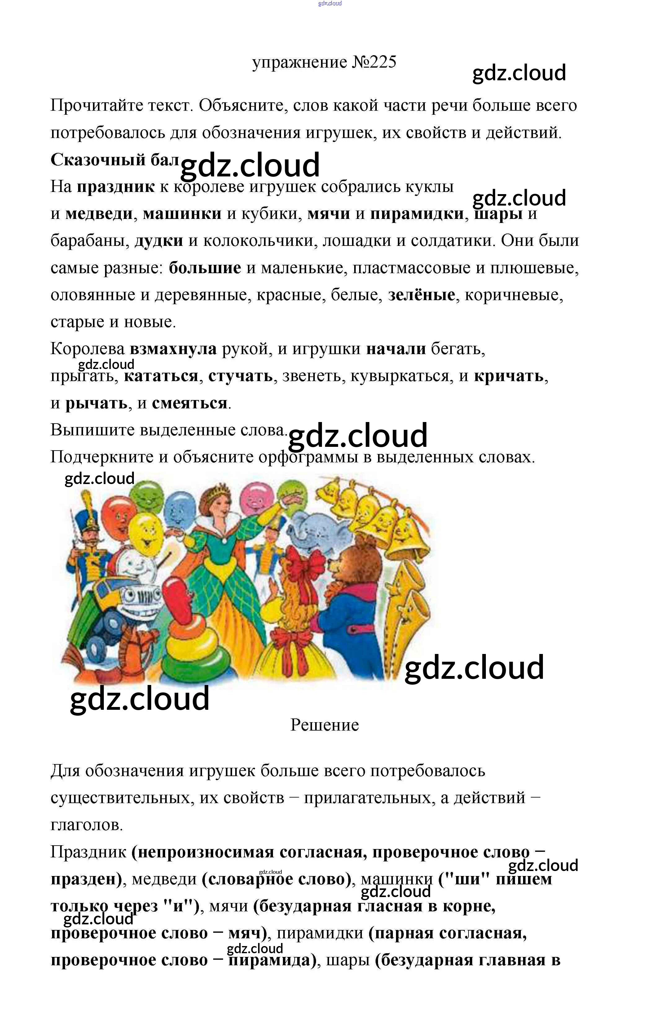 Ответ на задание 225 Учебник Русский язык за 3 (третий) класс Климанова, Бабушкина Перспектива 2019 Часть 1, 2