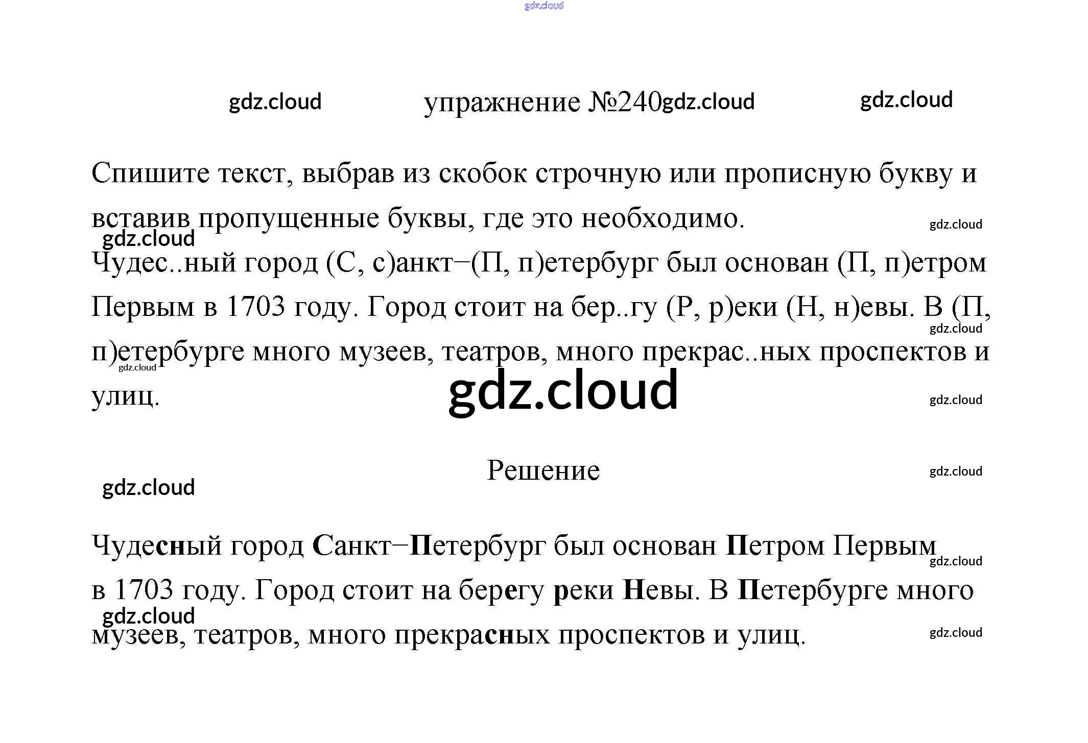 Ответ на задание 240 Учебник Русский язык за 3 (третий) класс Климанова, Бабушкина Перспектива 2019 Часть 1, 2