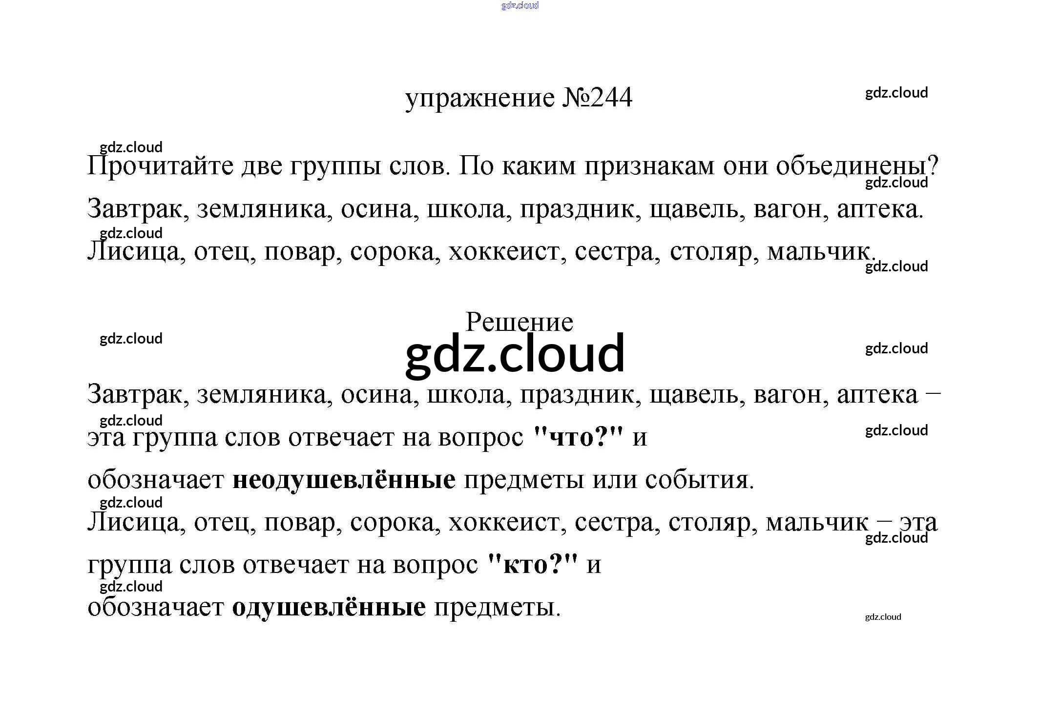 Ответ на задание 244 Учебник Русский язык за 3 (третий) класс Климанова, Бабушкина Перспектива 2019 Часть 1, 2