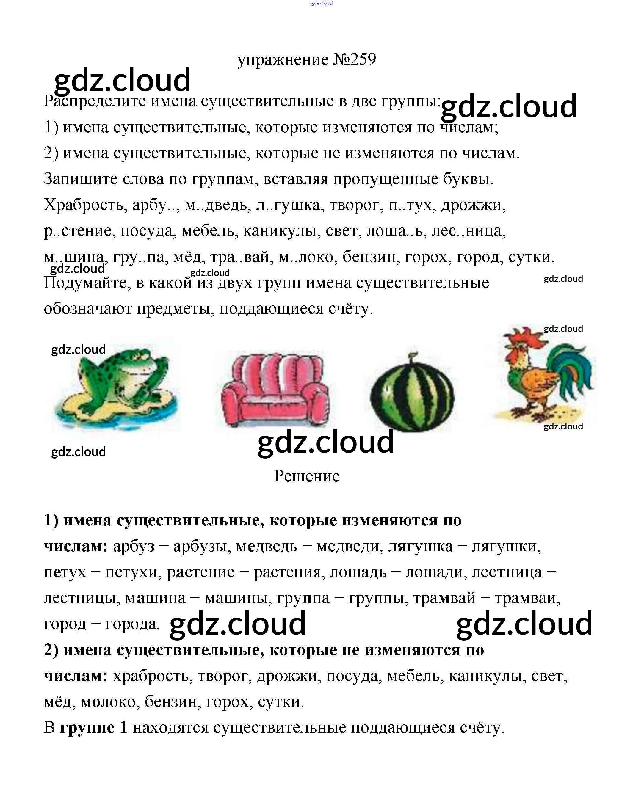 Ответ на задание 259 Учебник Русский язык за 3 (третий) класс Климанова, Бабушкина Перспектива 2019 Часть 1, 2