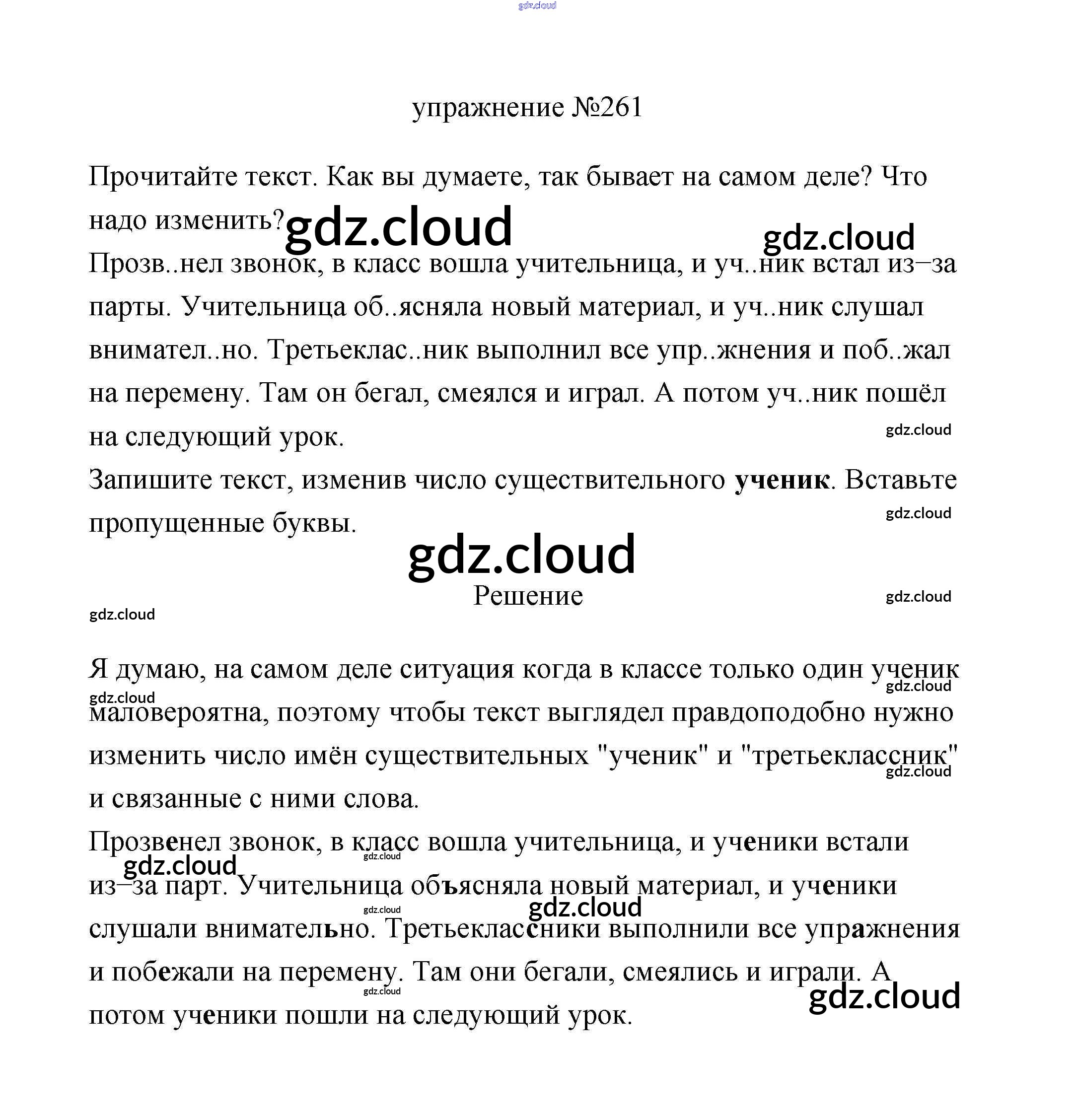 Ответ на задание 261 Учебник Русский язык за 3 (третий) класс Климанова, Бабушкина Перспектива 2019 Часть 1, 2