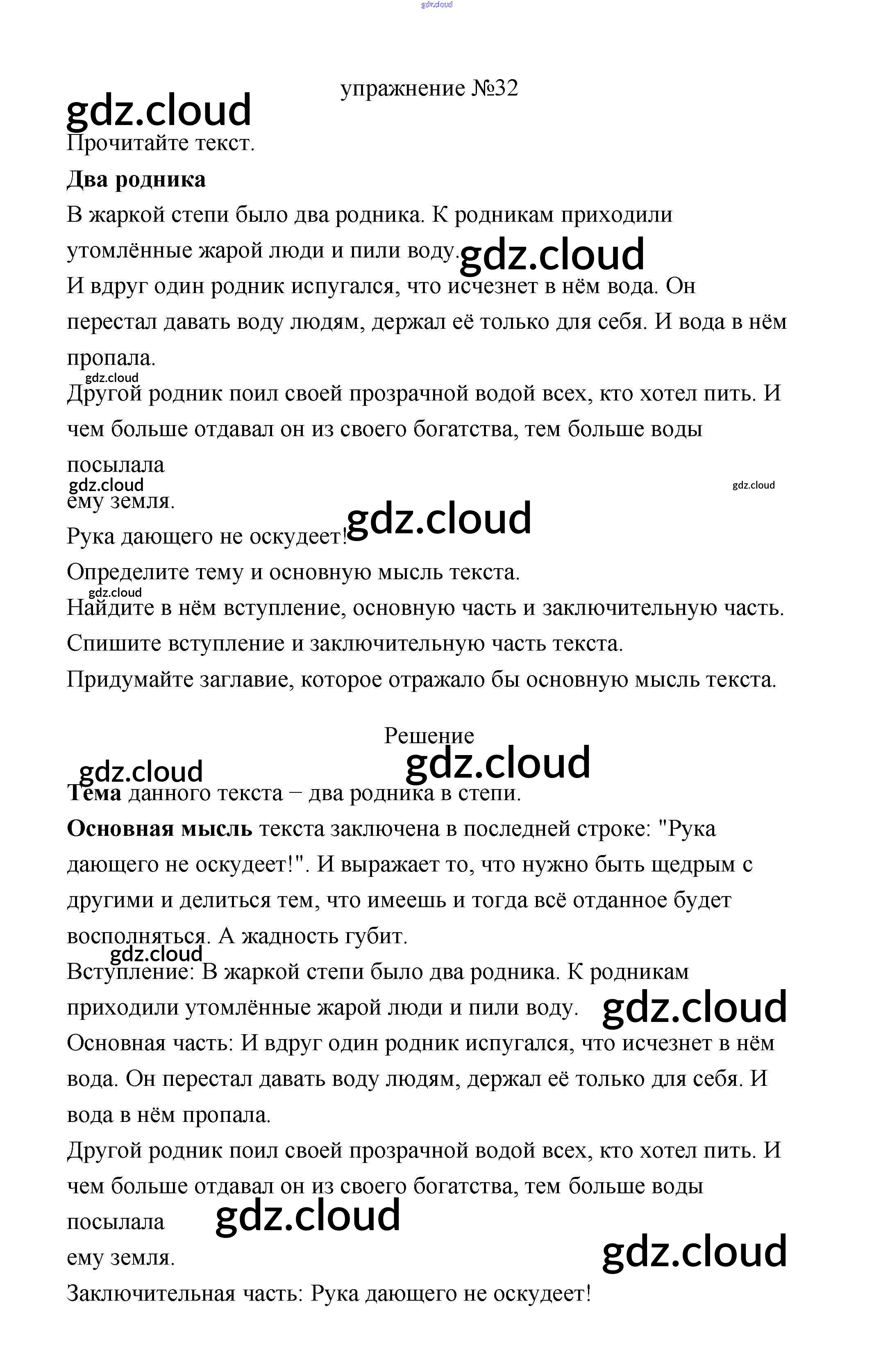 Ответ на задание 32 Учебник Русский язык за 3 (третий) класс Климанова, Бабушкина Перспектива 2019 Часть 1, 2