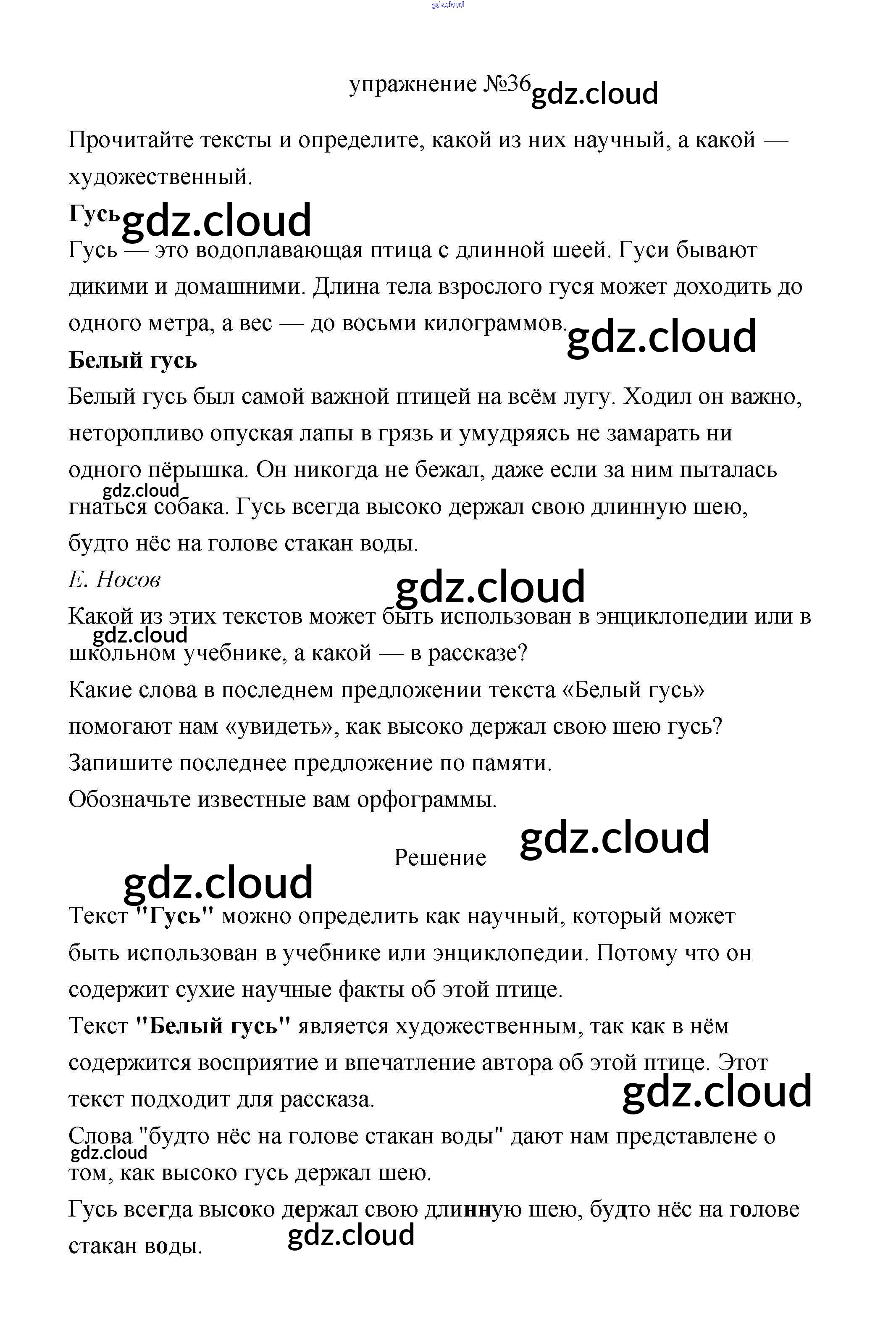 Ответ на задание 36 Учебник Русский язык за 3 (третий) класс Климанова, Бабушкина Перспектива 2019 Часть 1, 2