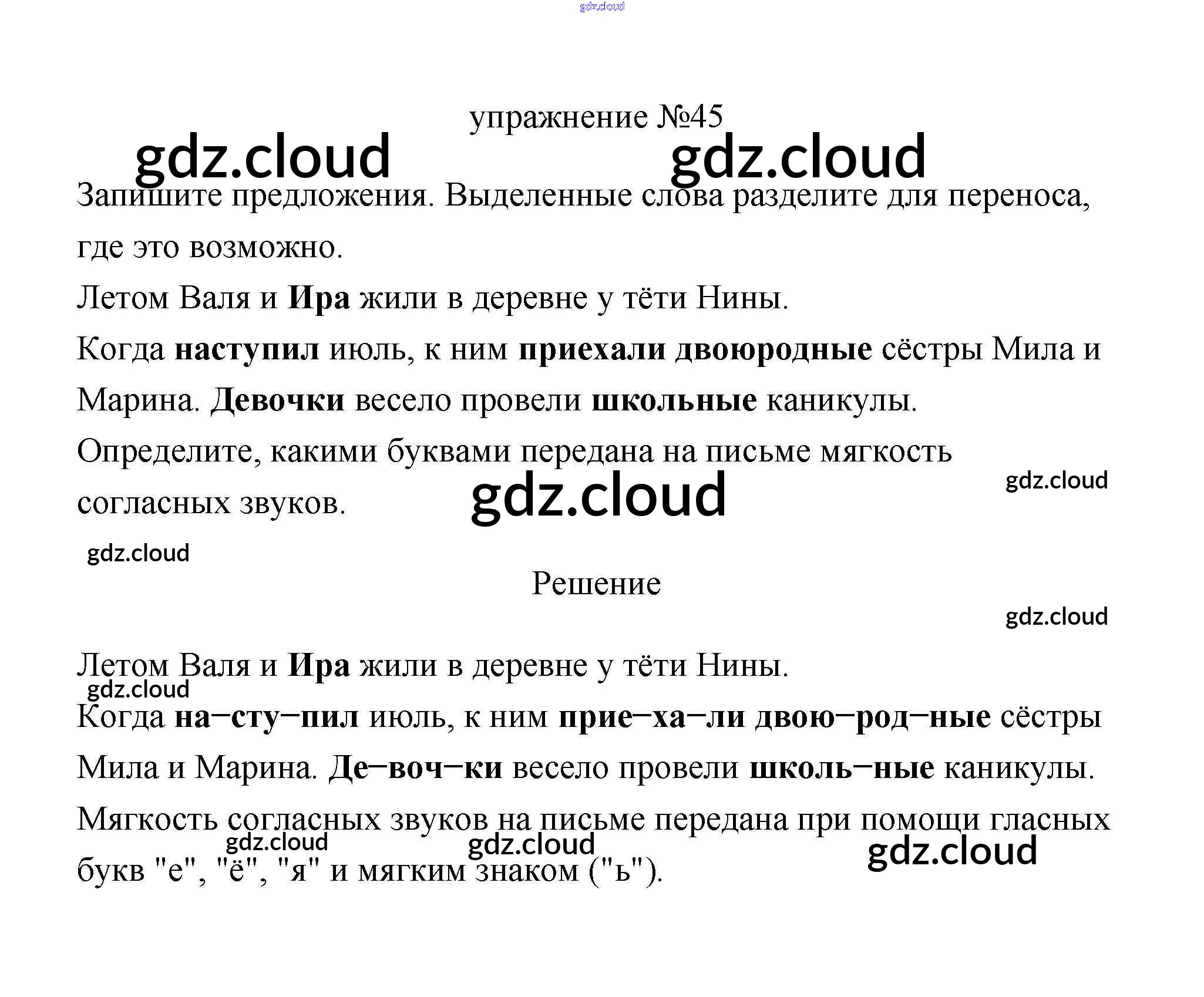 Ответ на задание 45 Учебник Русский язык за 3 (третий) класс Климанова, Бабушкина Перспектива 2019 Часть 1, 2