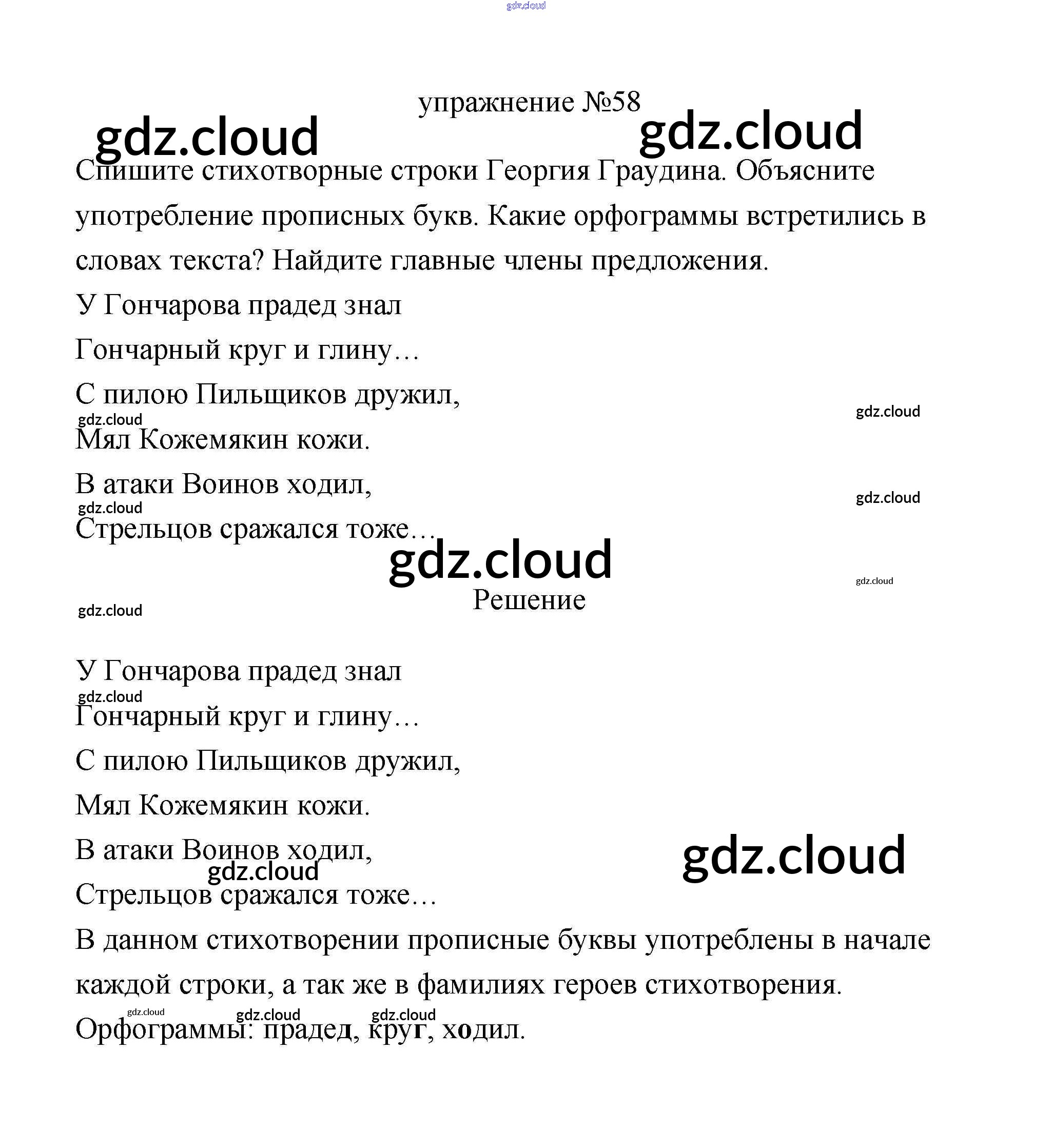 Ответ на задание 58 Учебник Русский язык за 3 (третий) класс Климанова, Бабушкина Перспектива 2019 Часть 1, 2