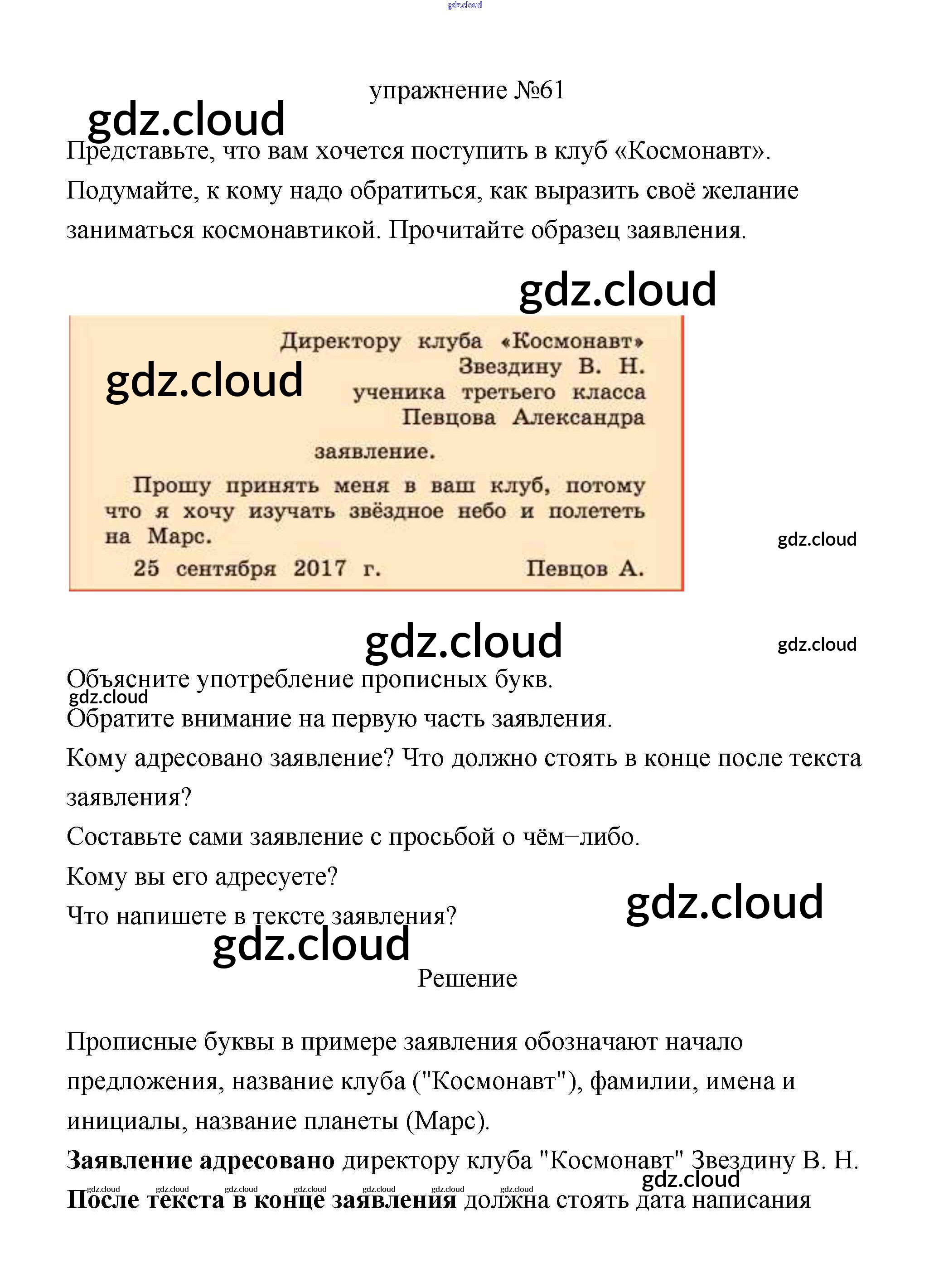 Ответ на задание 61 Учебник Русский язык за 3 (третий) класс Климанова, Бабушкина Перспектива 2019 Часть 1, 2