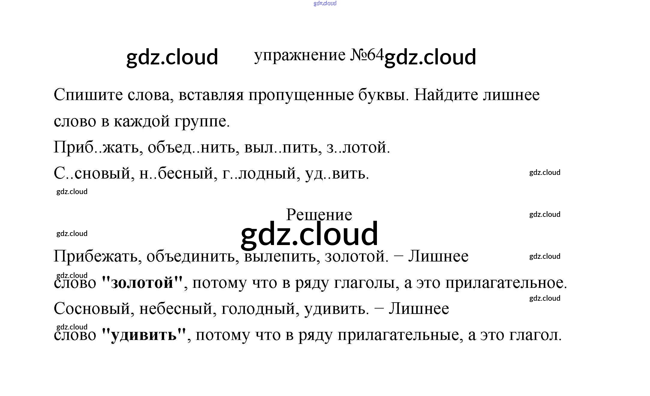 Ответ на задание 64 Учебник Русский язык за 3 (третий) класс Климанова, Бабушкина Перспектива 2019 Часть 1, 2