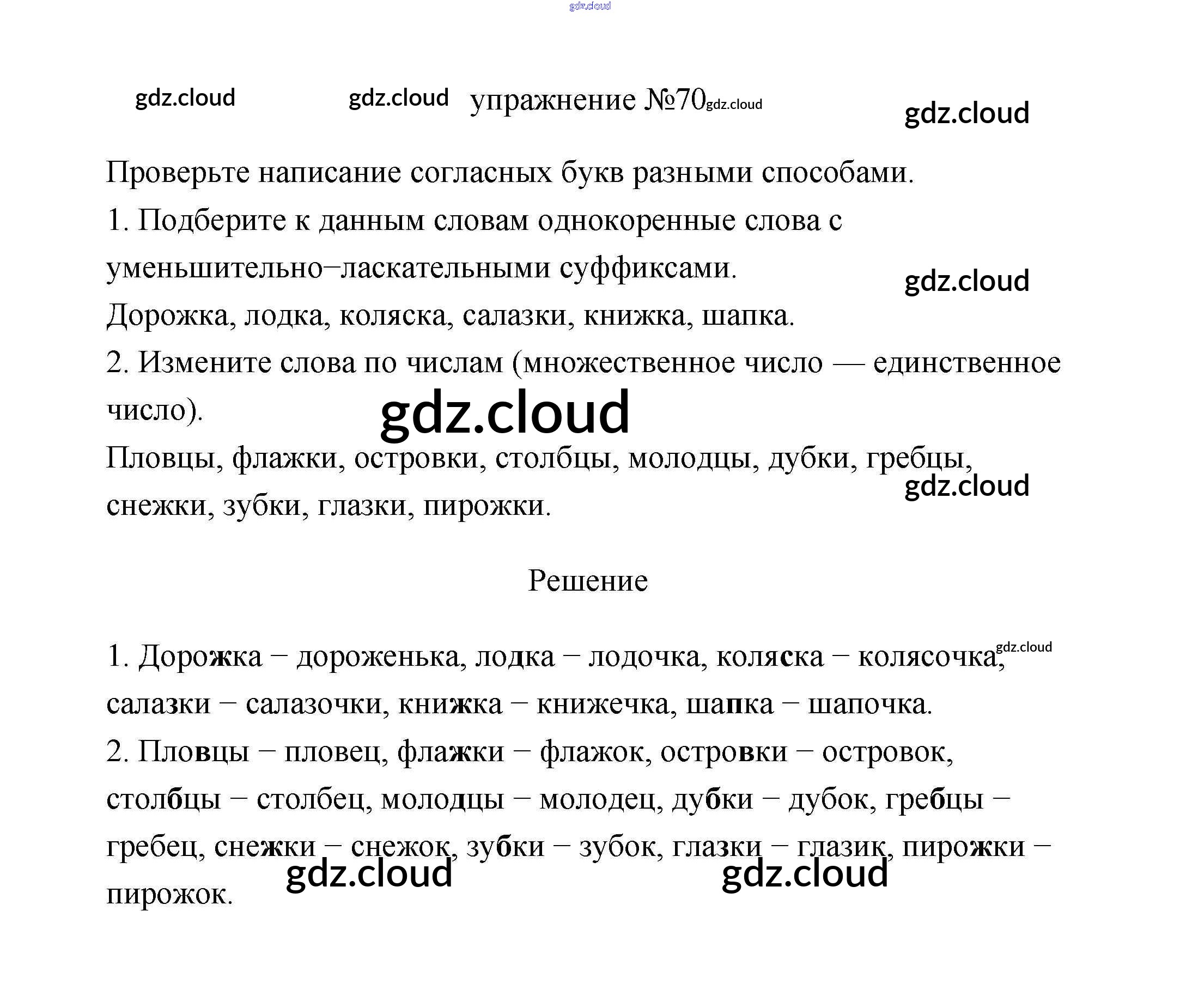 Ответ на задание 70 Учебник Русский язык за 3 (третий) класс Климанова, Бабушкина Перспектива 2019 Часть 1, 2