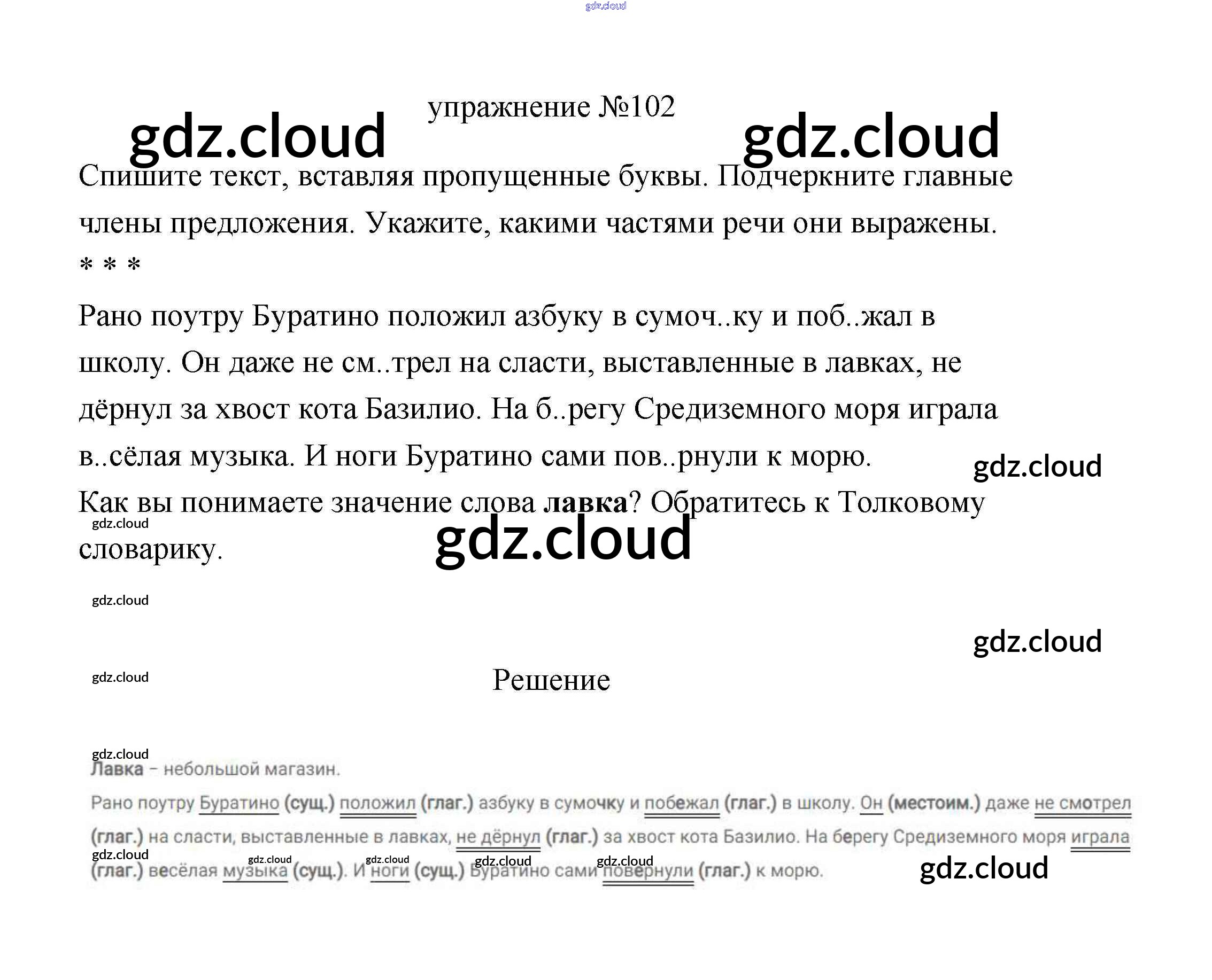 Ответ на задание 102 Учебник Русский язык за 3 (третий) класс Климанова, Бабушкина Перспектива 2019 Часть 1, 2