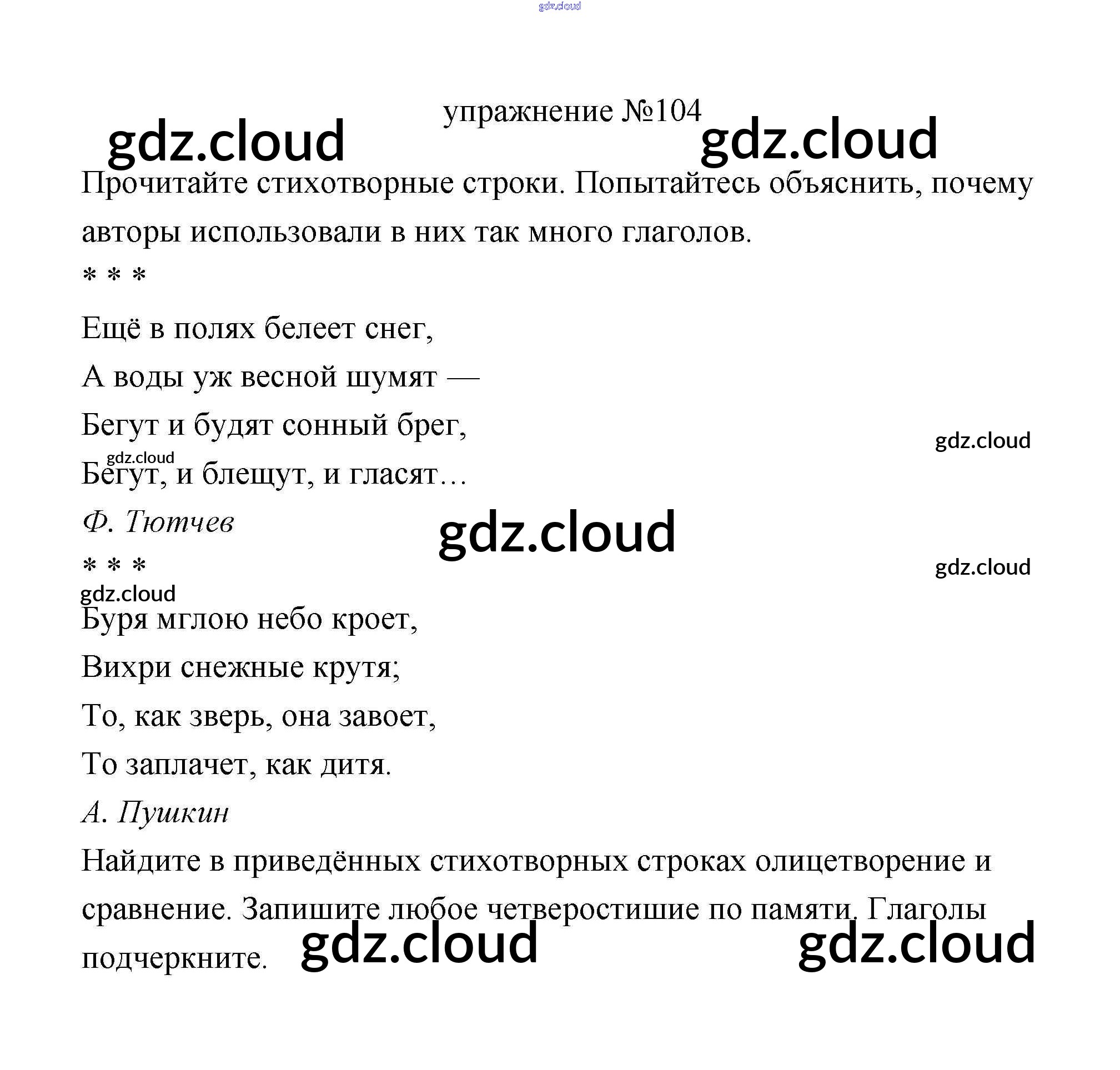 Ответ на задание 104 Учебник Русский язык за 3 (третий) класс Климанова, Бабушкина Перспектива 2019 Часть 1, 2