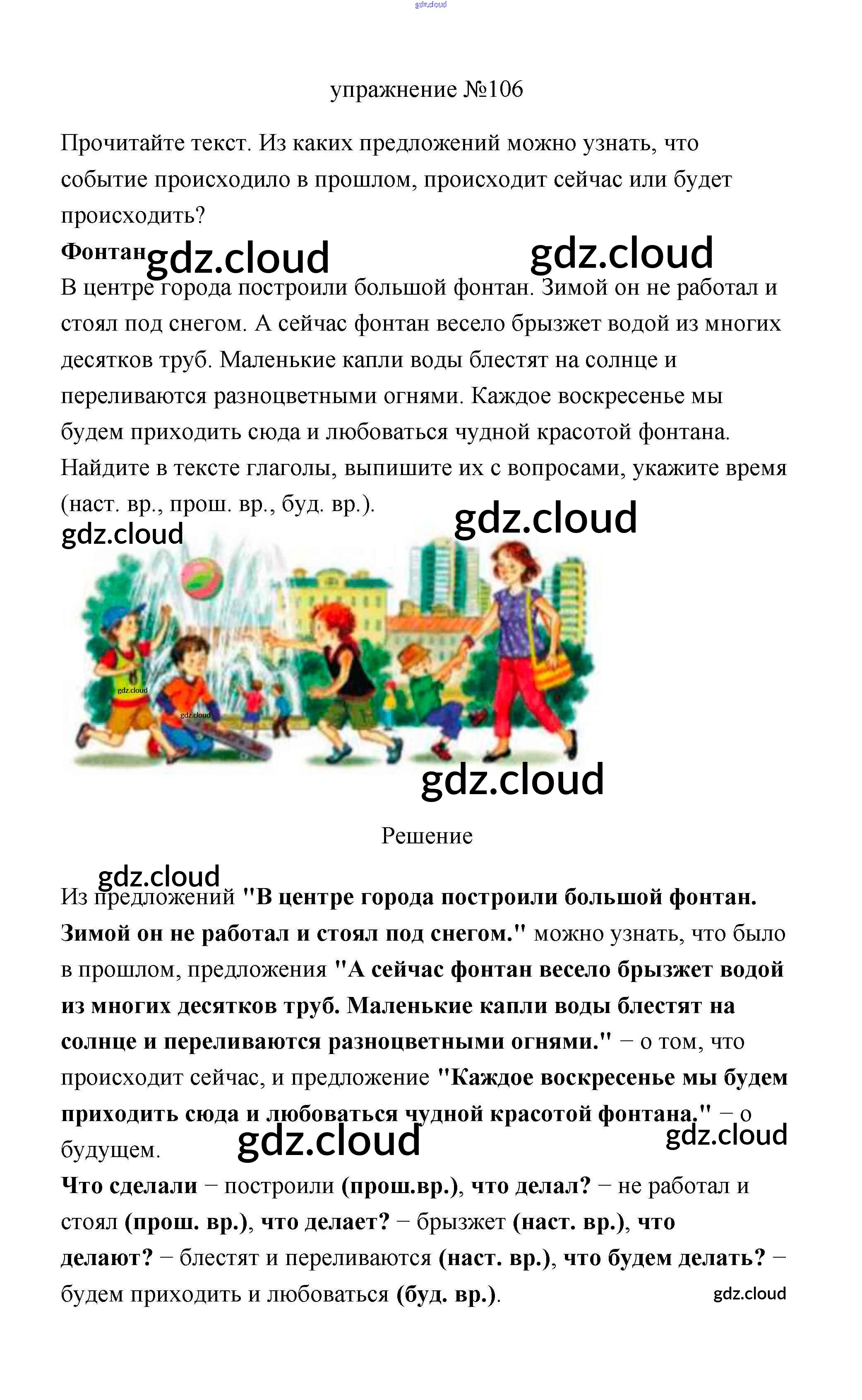Ответ на задание 106 Учебник Русский язык за 3 (третий) класс Климанова, Бабушкина Перспектива 2019 Часть 1, 2
