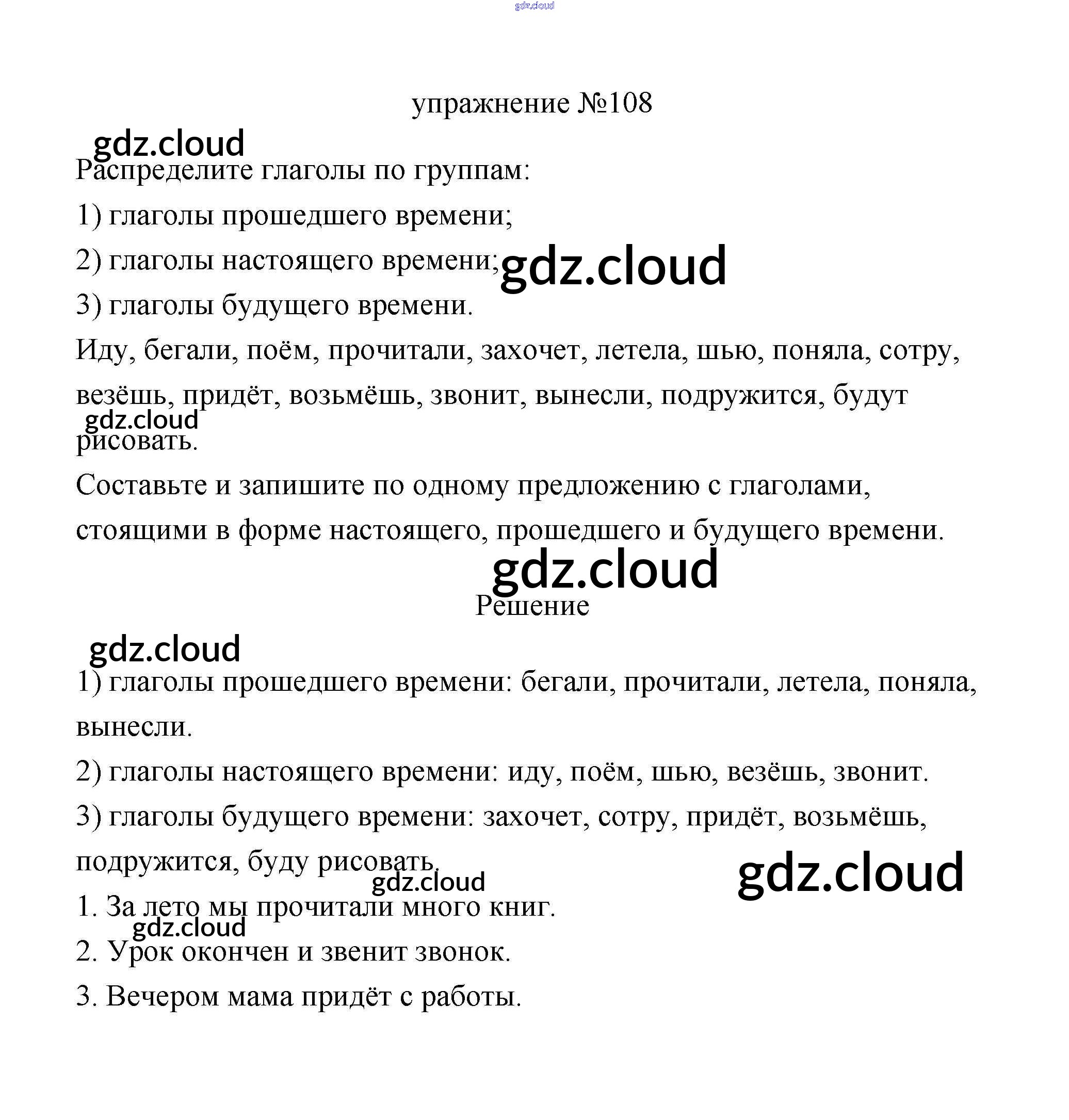 Ответ на задание 108 Учебник Русский язык за 3 (третий) класс Климанова, Бабушкина Перспектива 2019 Часть 1, 2