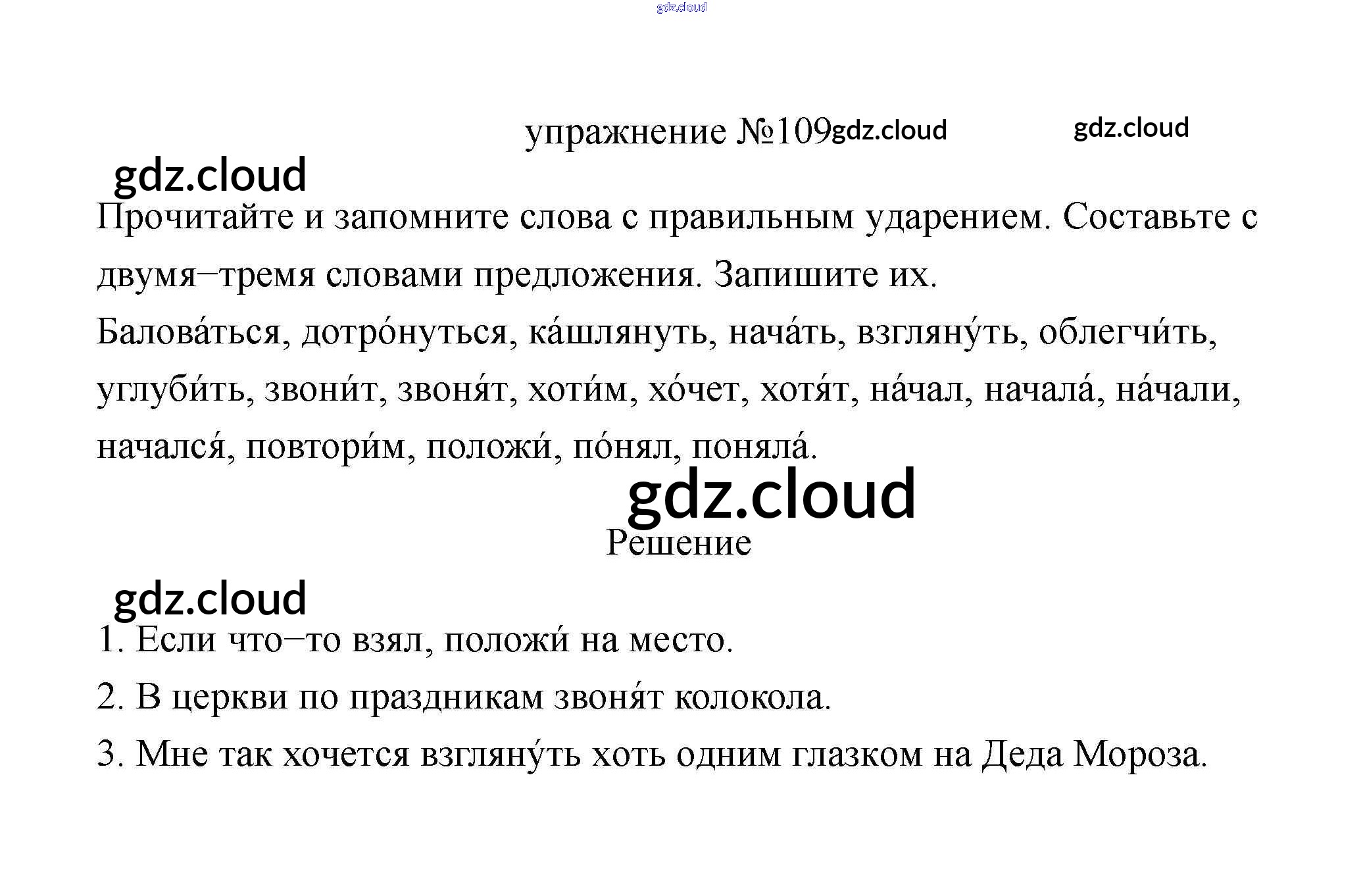 Ответ на задание 109 Учебник Русский язык за 3 (третий) класс Климанова, Бабушкина Перспектива 2019 Часть 1, 2