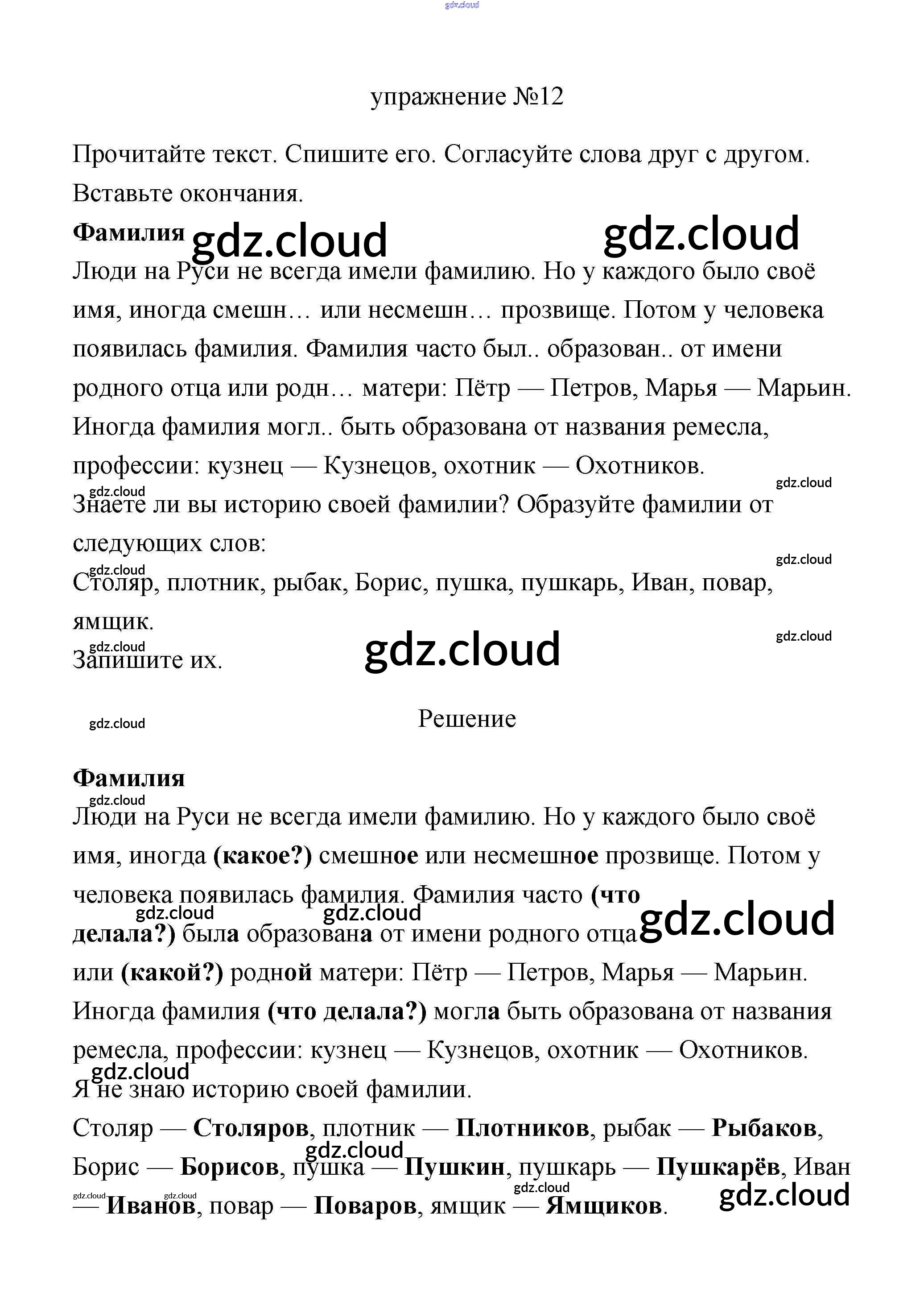 Ответ на задание 12 Учебник Русский язык за 3 (третий) класс Климанова, Бабушкина Перспектива 2019 Часть 1, 2
