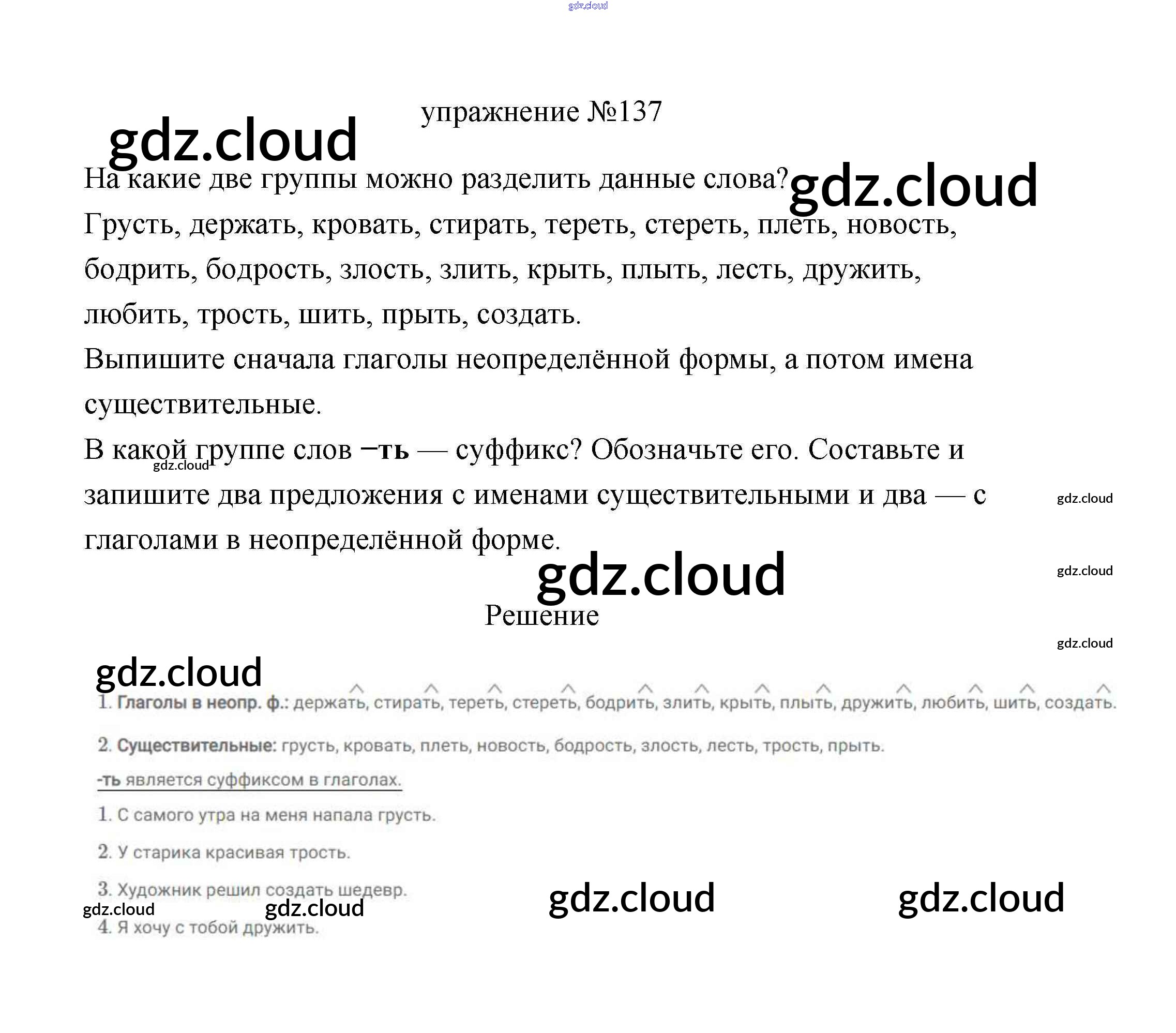 Ответ на задание 137 Учебник Русский язык за 3 (третий) класс Климанова, Бабушкина Перспектива 2019 Часть 1, 2