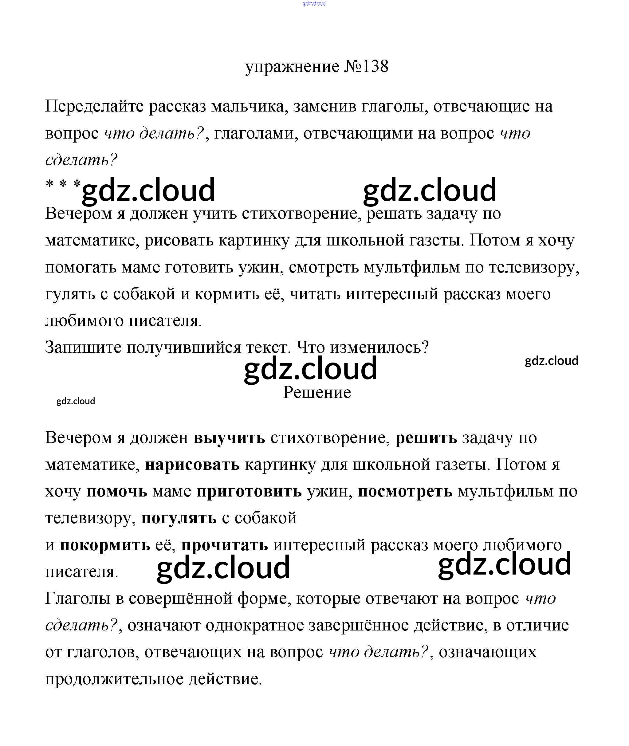 Ответ на задание 138 Учебник Русский язык за 3 (третий) класс Климанова, Бабушкина Перспектива 2019 Часть 1, 2