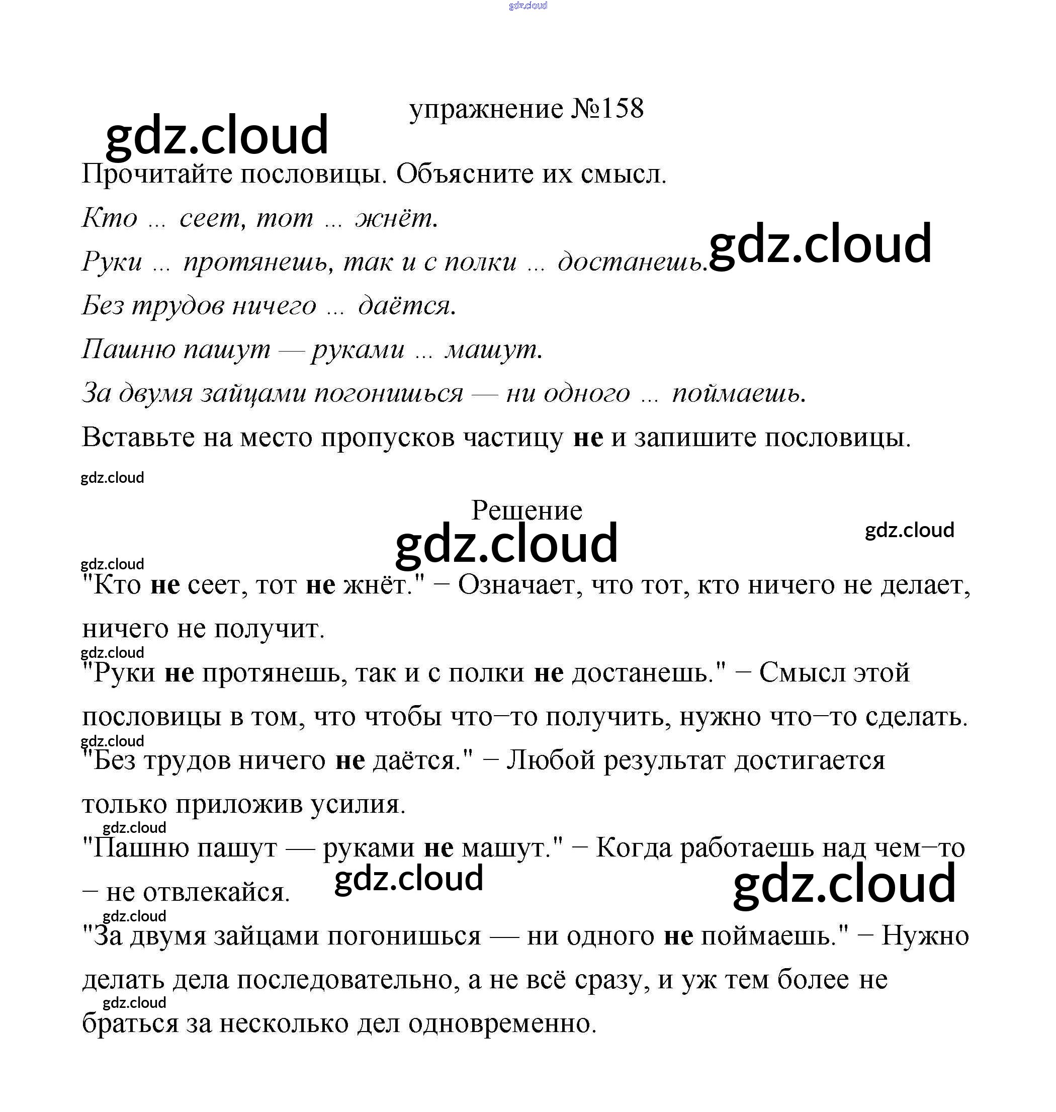 Ответ на задание 158 Учебник Русский язык за 3 (третий) класс Климанова, Бабушкина Перспектива 2019 Часть 1, 2