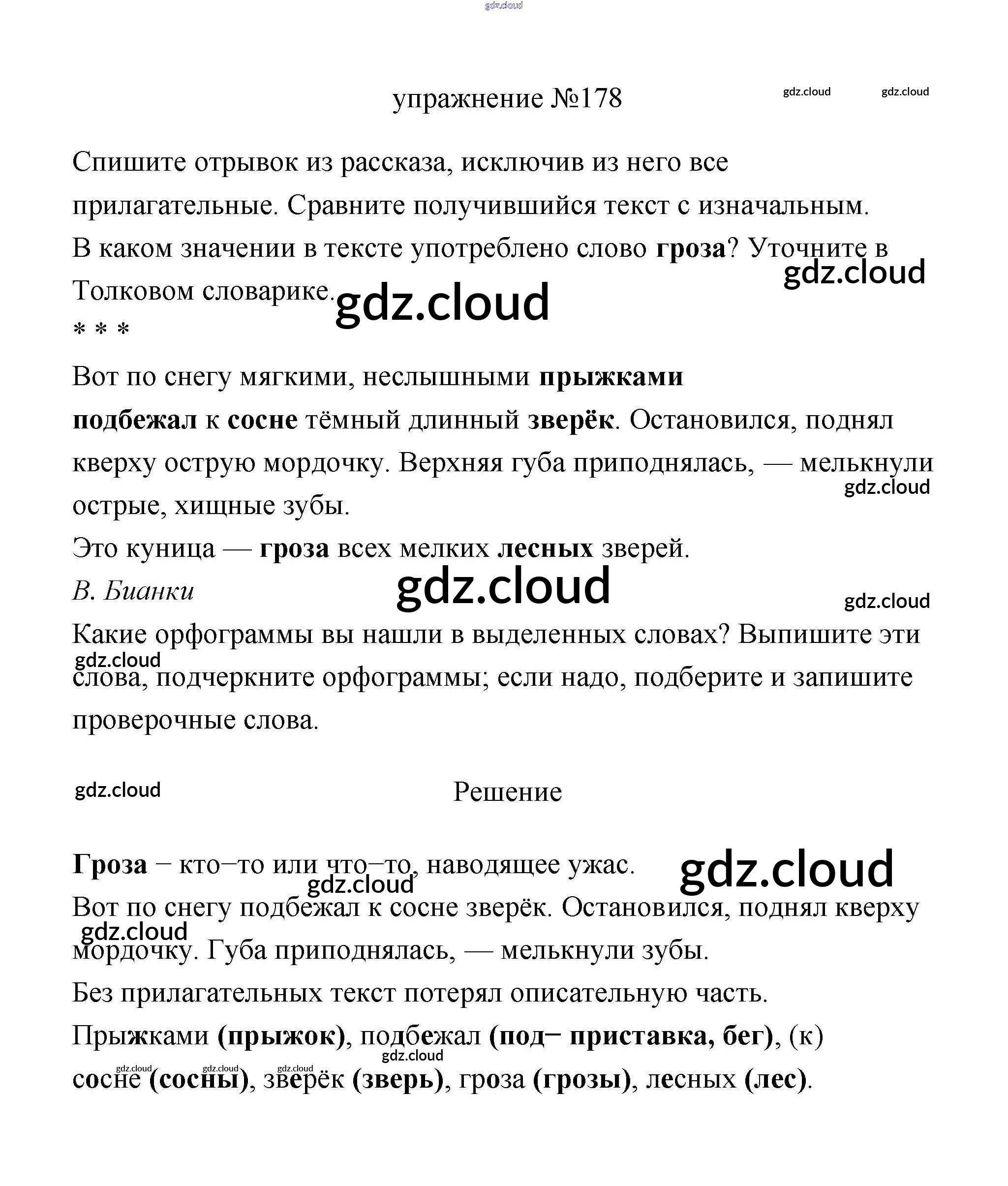 Ответ на задание 178 Учебник Русский язык за 3 (третий) класс Климанова, Бабушкина Перспектива 2019 Часть 1, 2