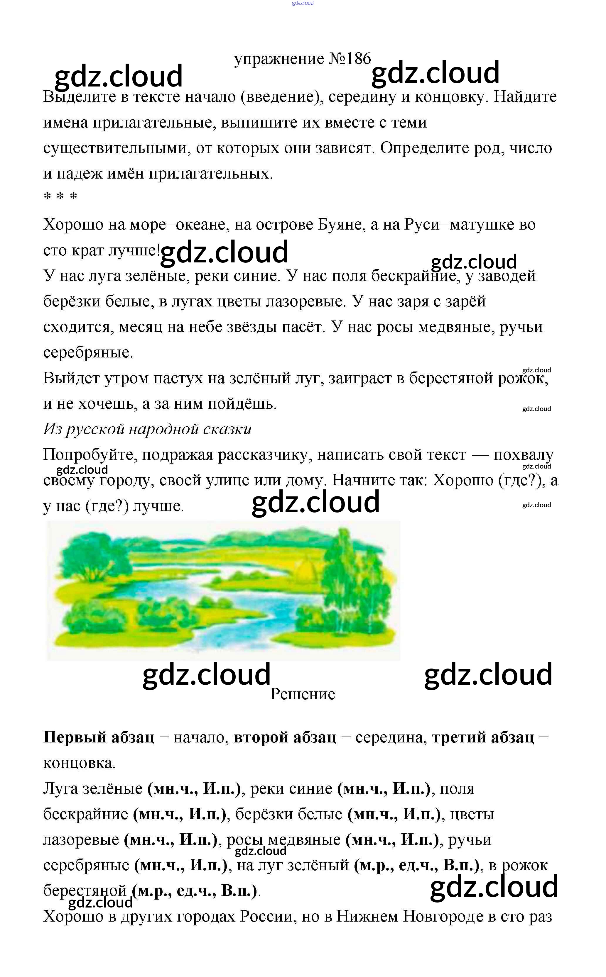 Ответ на задание 186 Учебник Русский язык за 3 (третий) класс Климанова, Бабушкина Перспектива 2019 Часть 1, 2