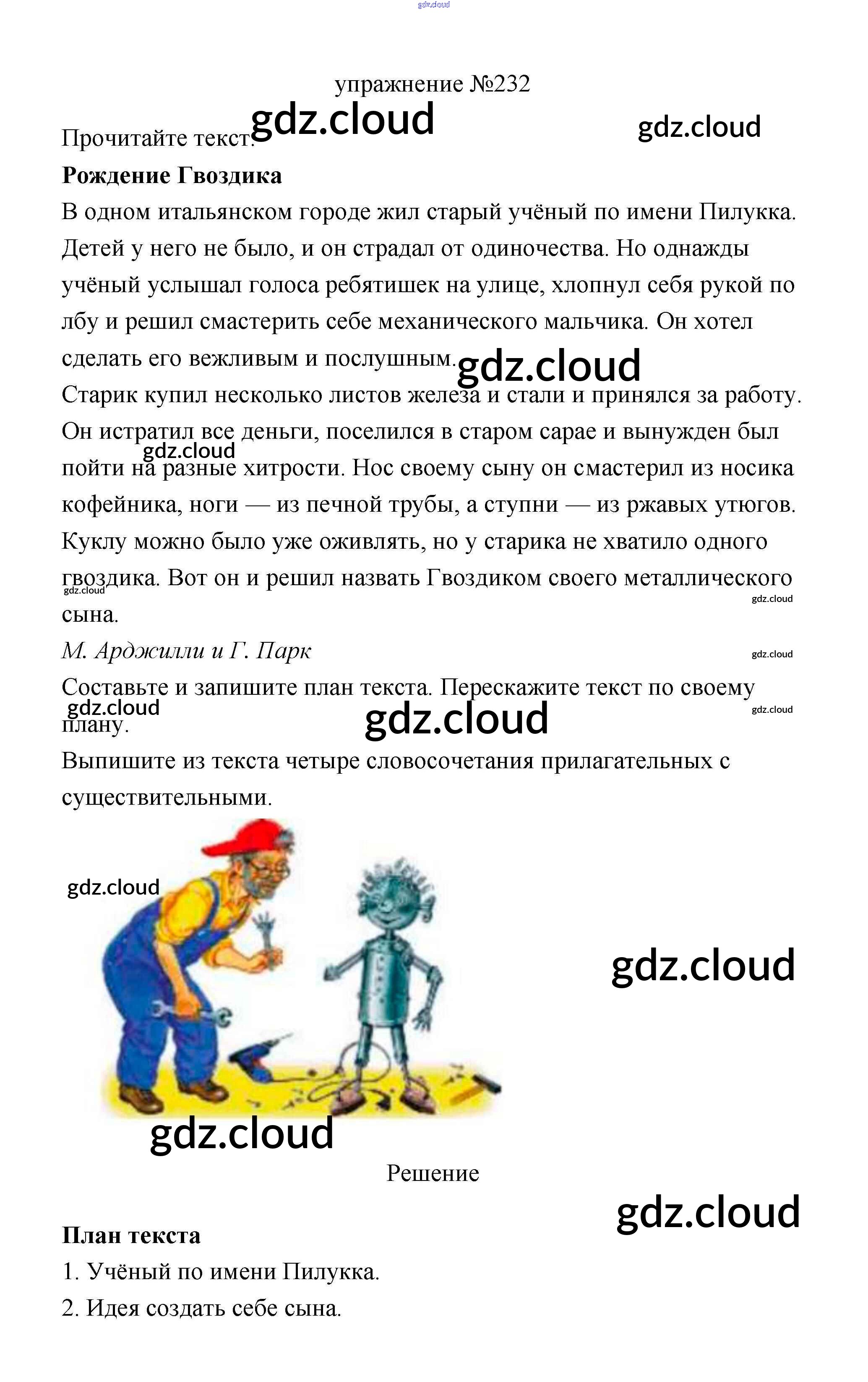 Ответ на задание 232 Учебник Русский язык за 3 (третий) класс Климанова, Бабушкина Перспектива 2019 Часть 1, 2