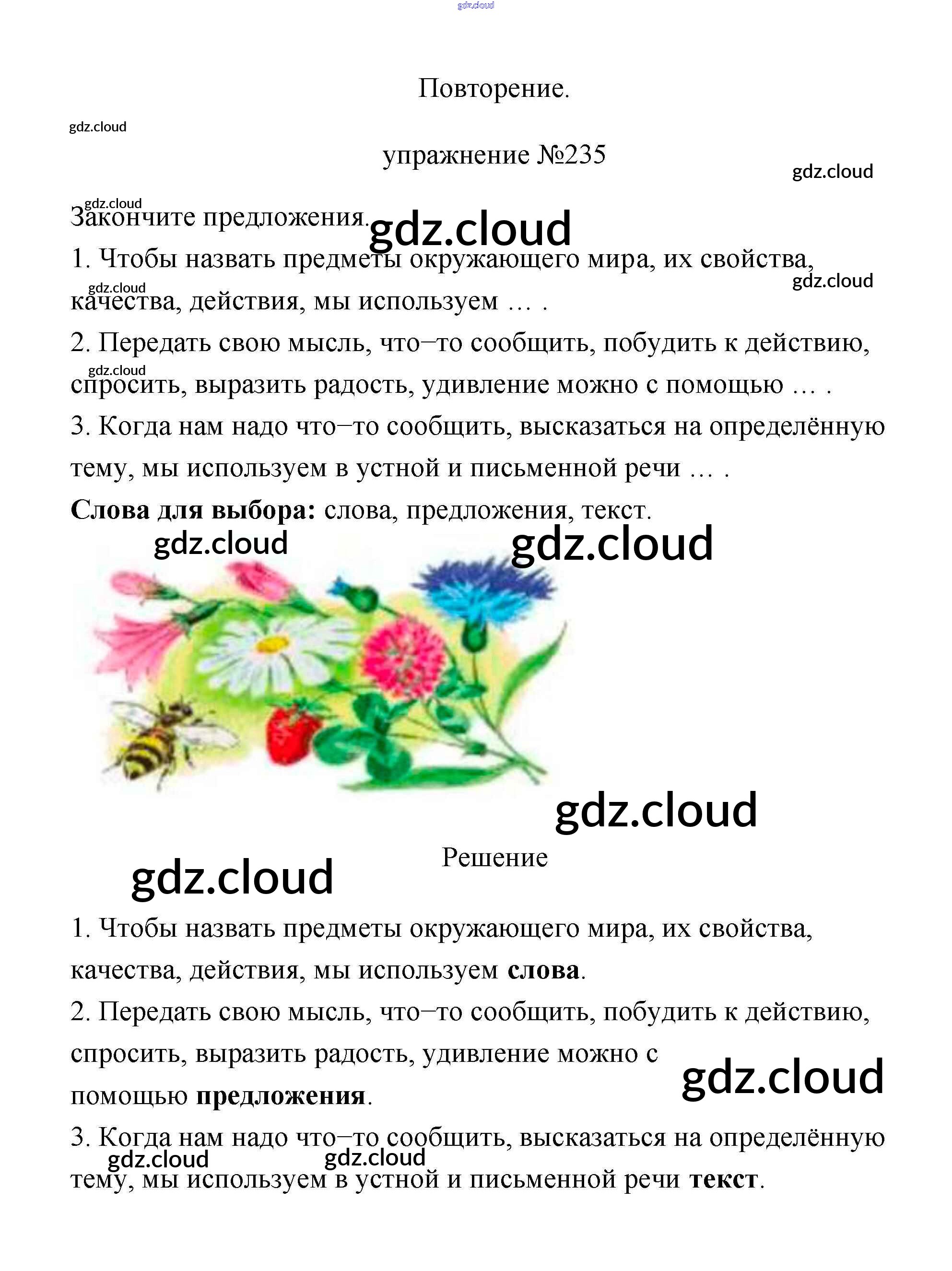 Ответ на задание 235 Учебник Русский язык за 3 (третий) класс Климанова, Бабушкина Перспектива 2019 Часть 1, 2